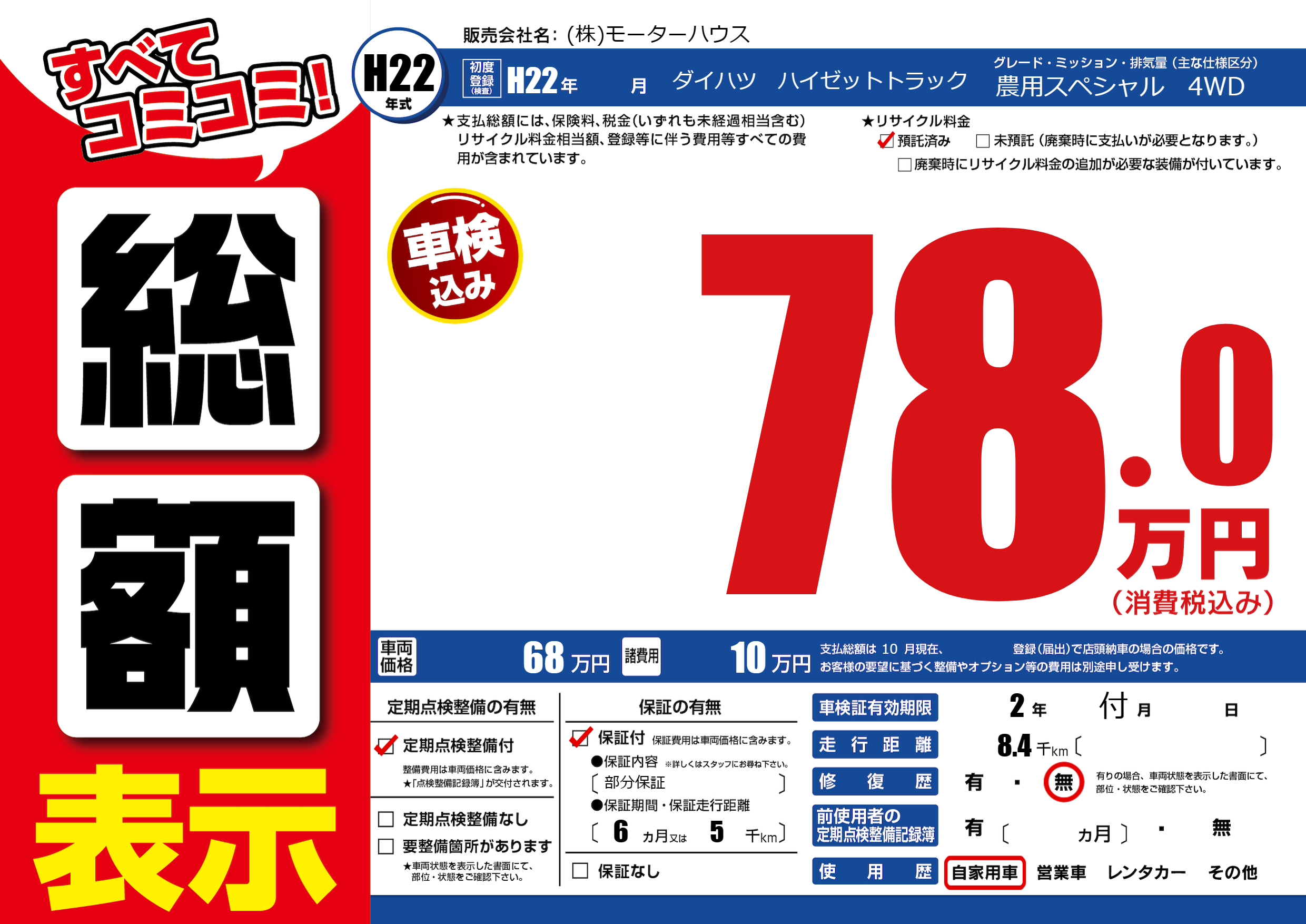 保証付き 保証内容(部分保証) 6ヶ月または(5)千kmまで |
