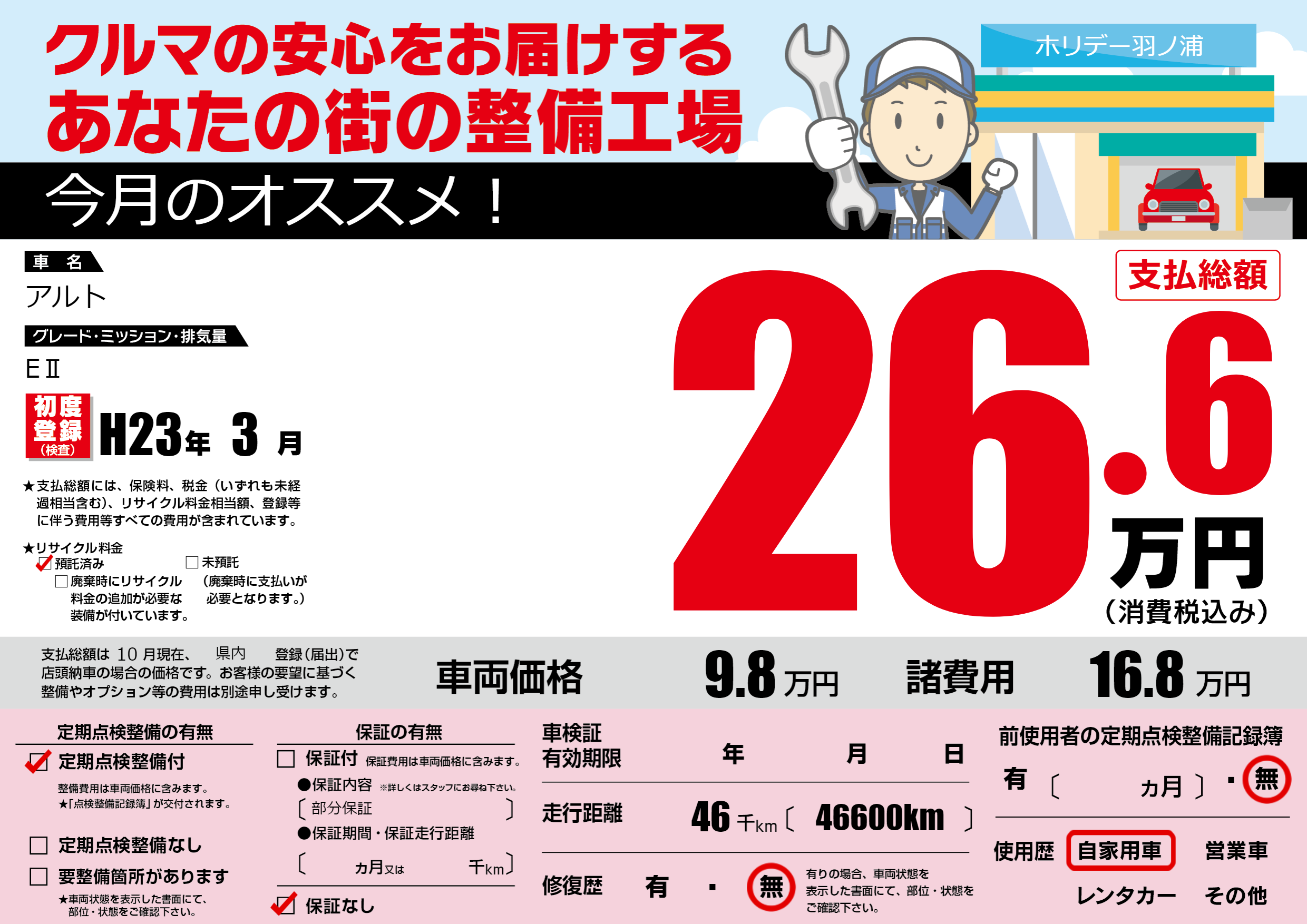 | 納車時の 整備費用 |