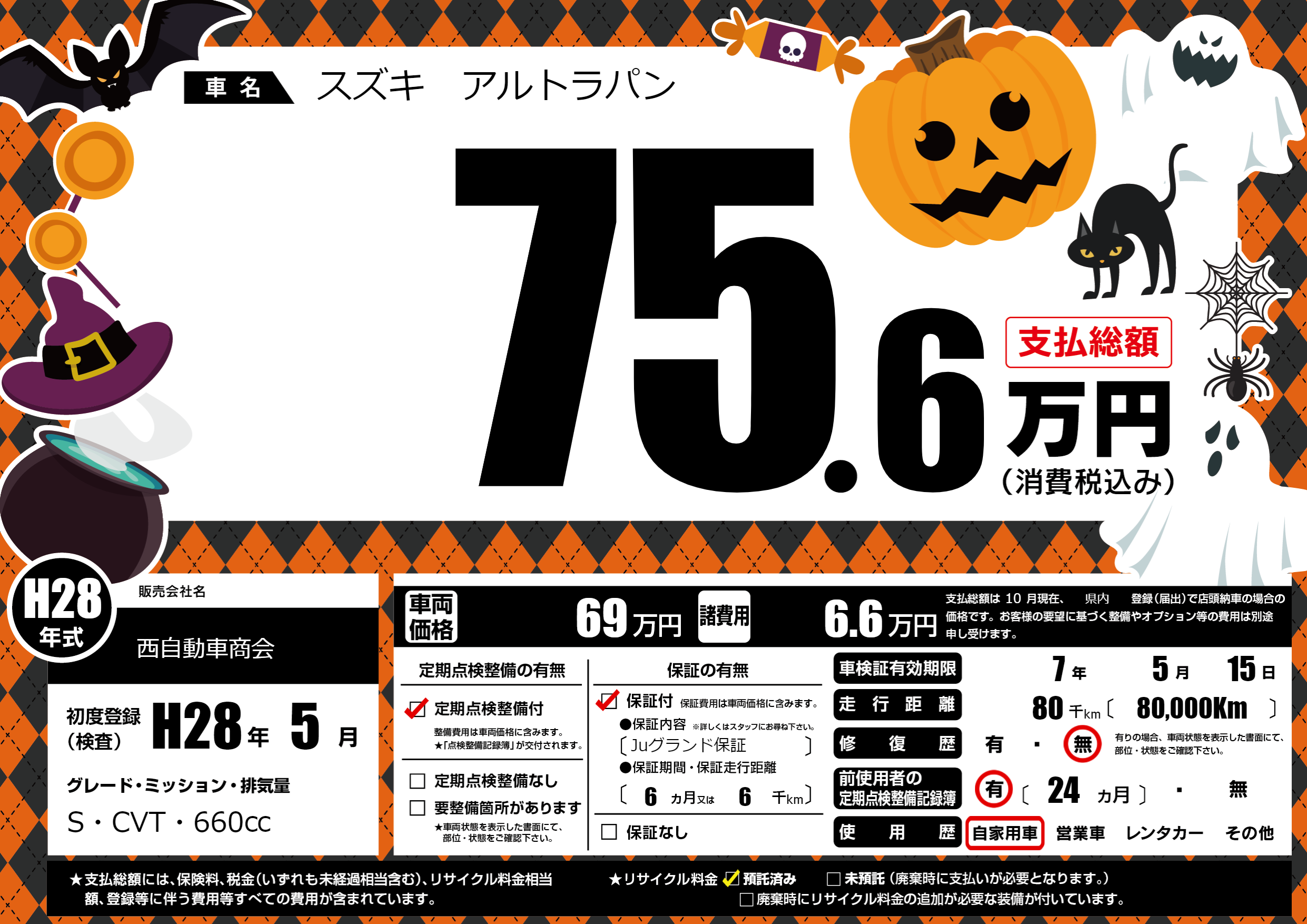 | 走行キロ | 8万km | 初年度登録 | H28年5月 |