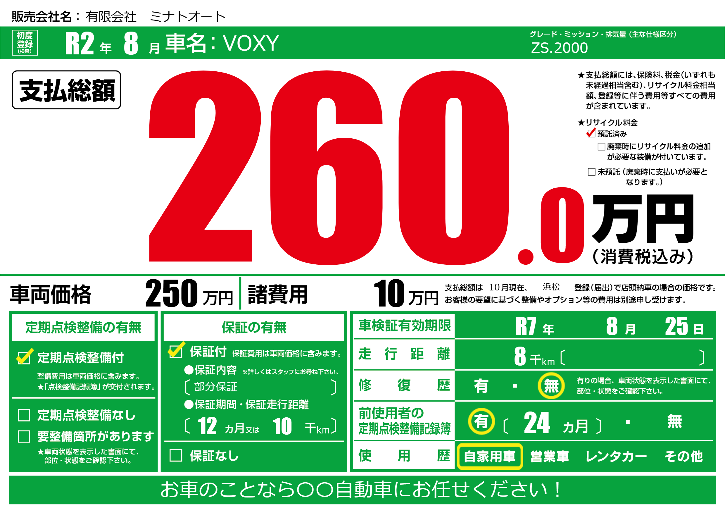 | 車検制限 | R7年 8月 25日 | ||