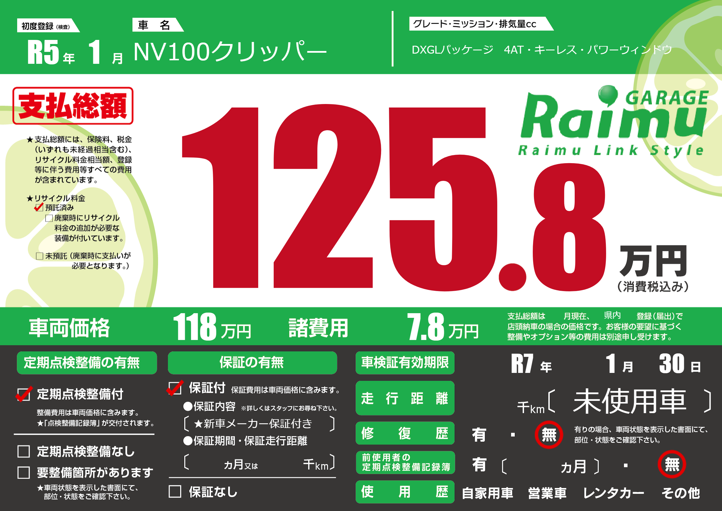 なし | 車検制限 | R7年1月30月 |