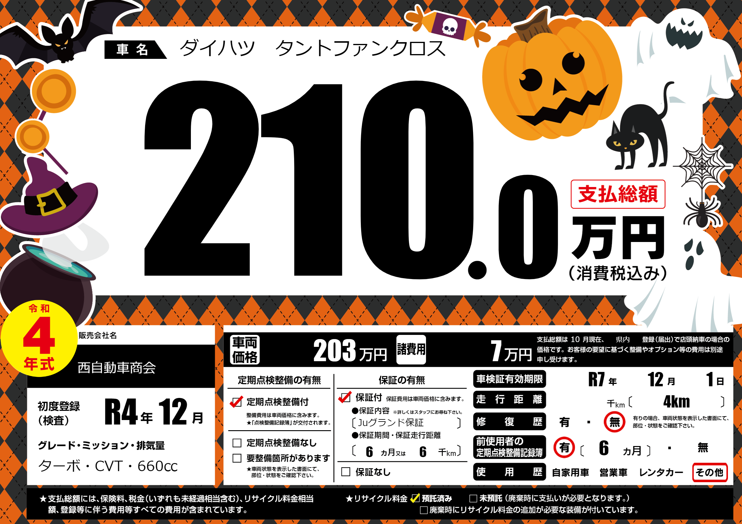 | 車検制限 | R7年 12月 1日 | ||