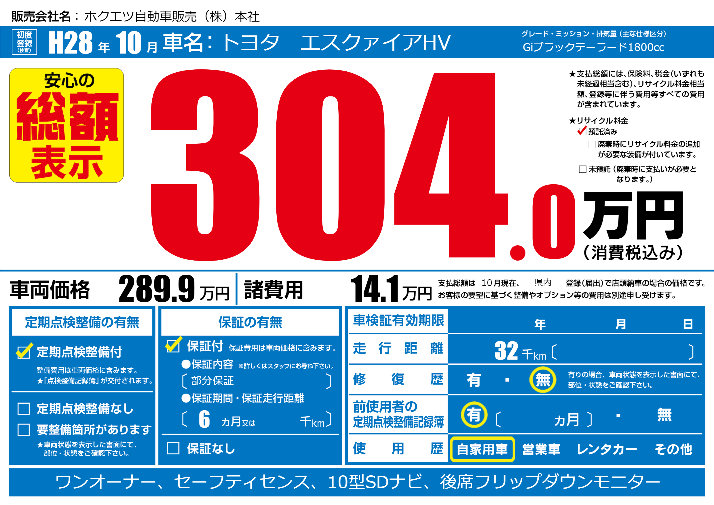 | 定期点検整備 | 定期点検整備あり | ||