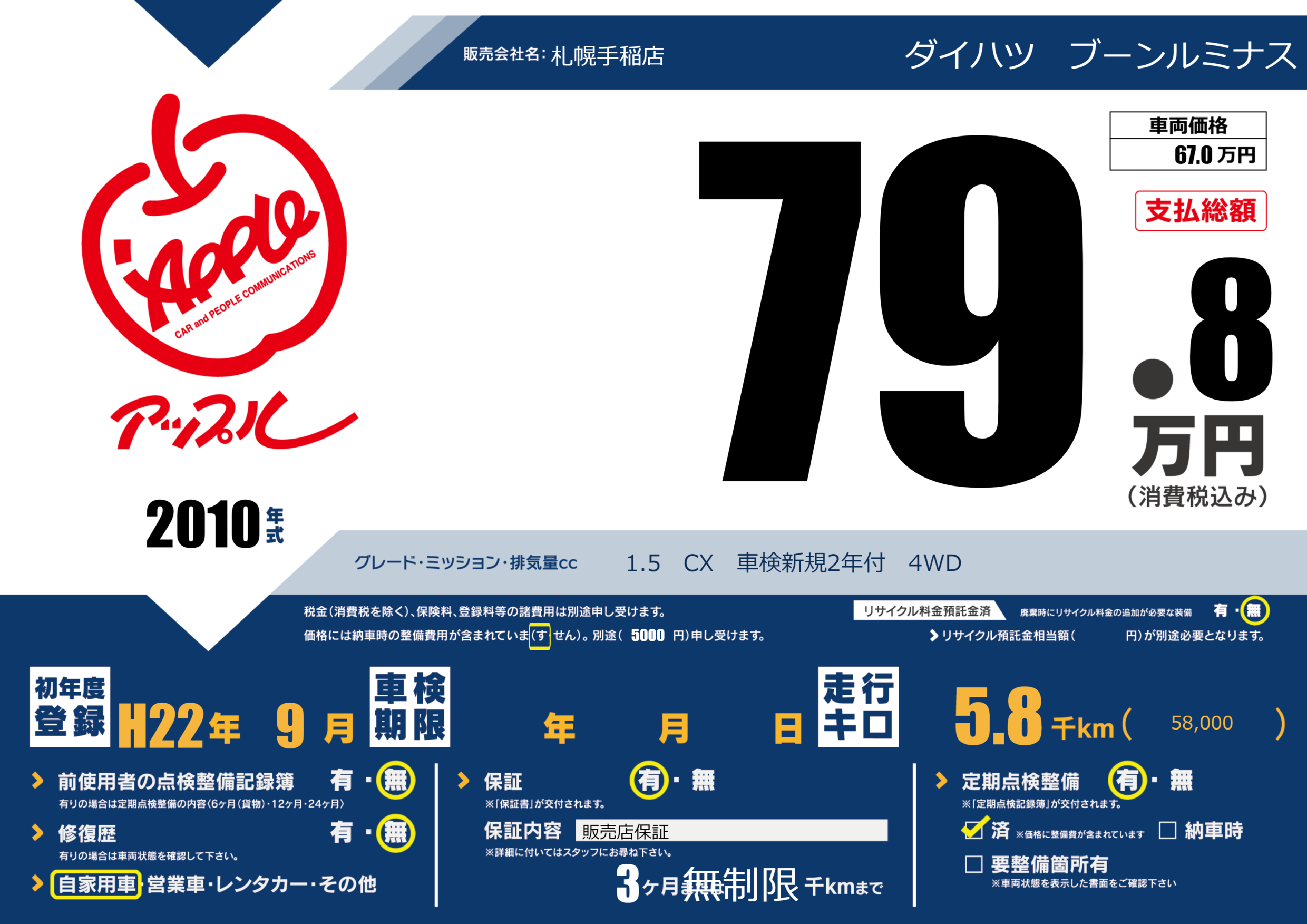 | 定期点検整備 | 定期点検整備あり 定期点検整備済み | ||