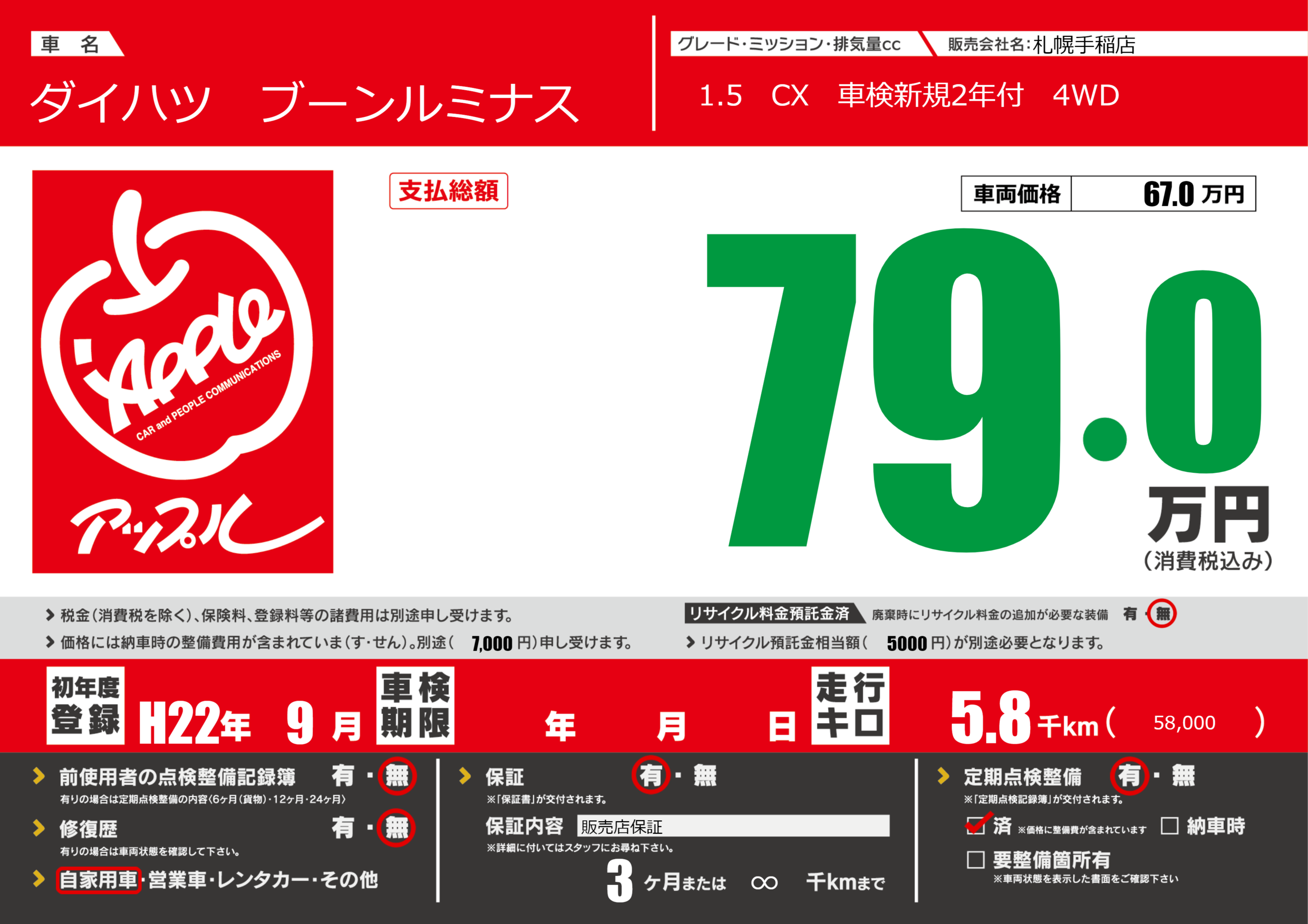 | 定期点検整備 | 定期点検整備あり 定期点検整備済み | ||