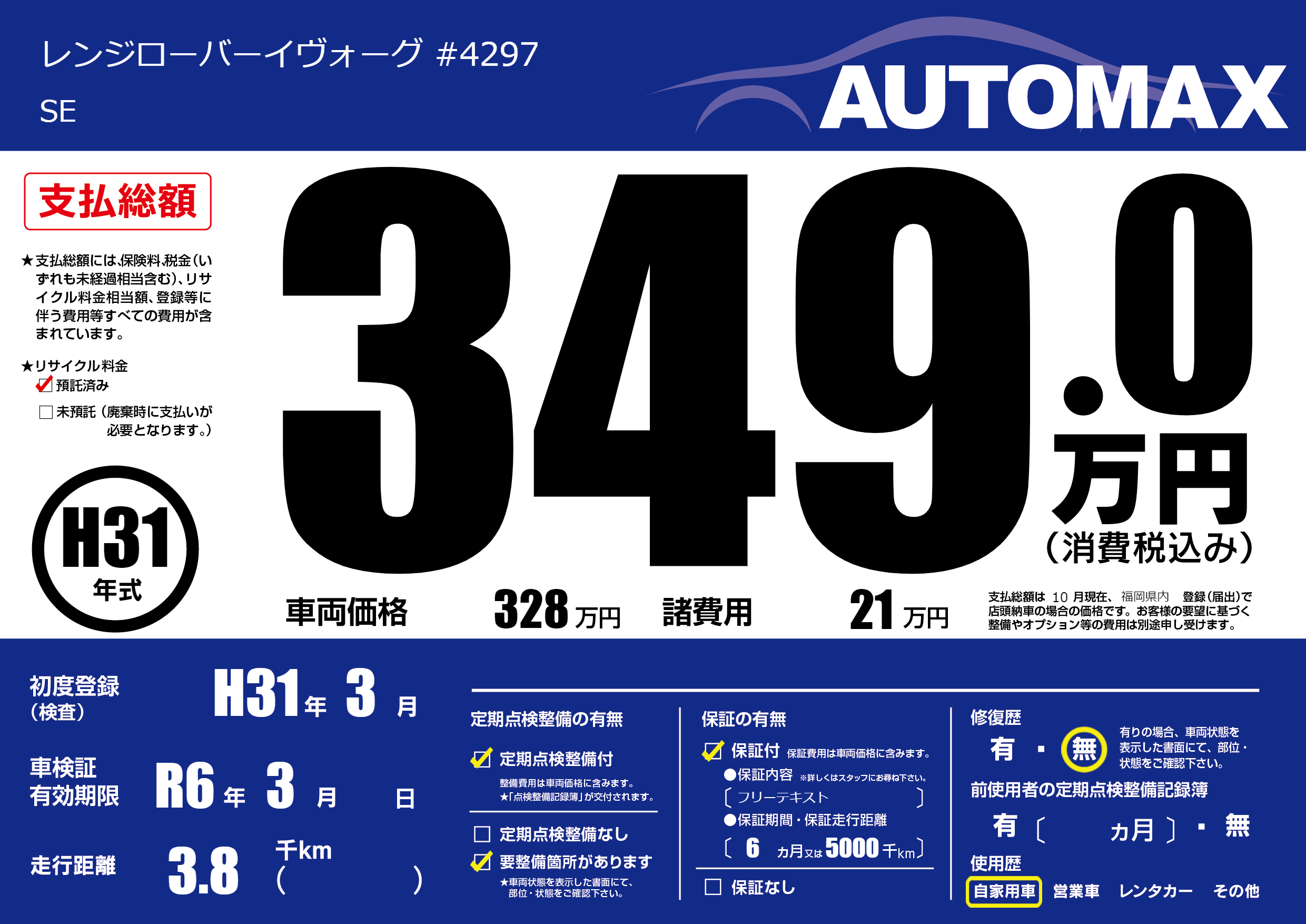 | 車検制限 | R6年 3月 - 日 | ||