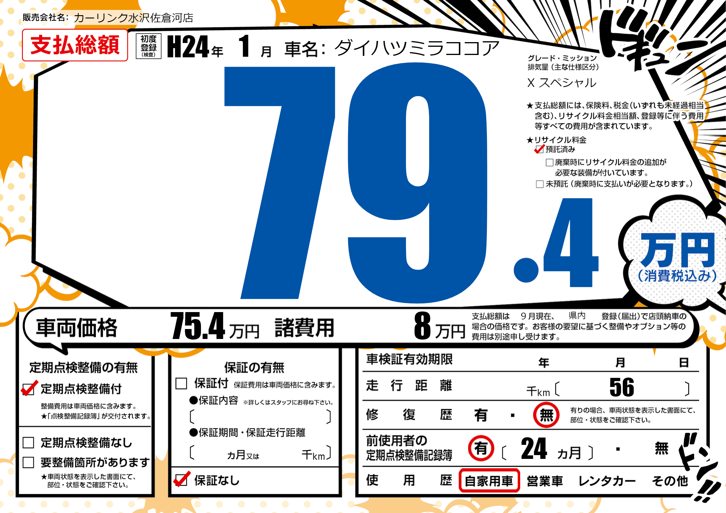 | 走行キロ | - | 初年度登録 | H24年1月 |