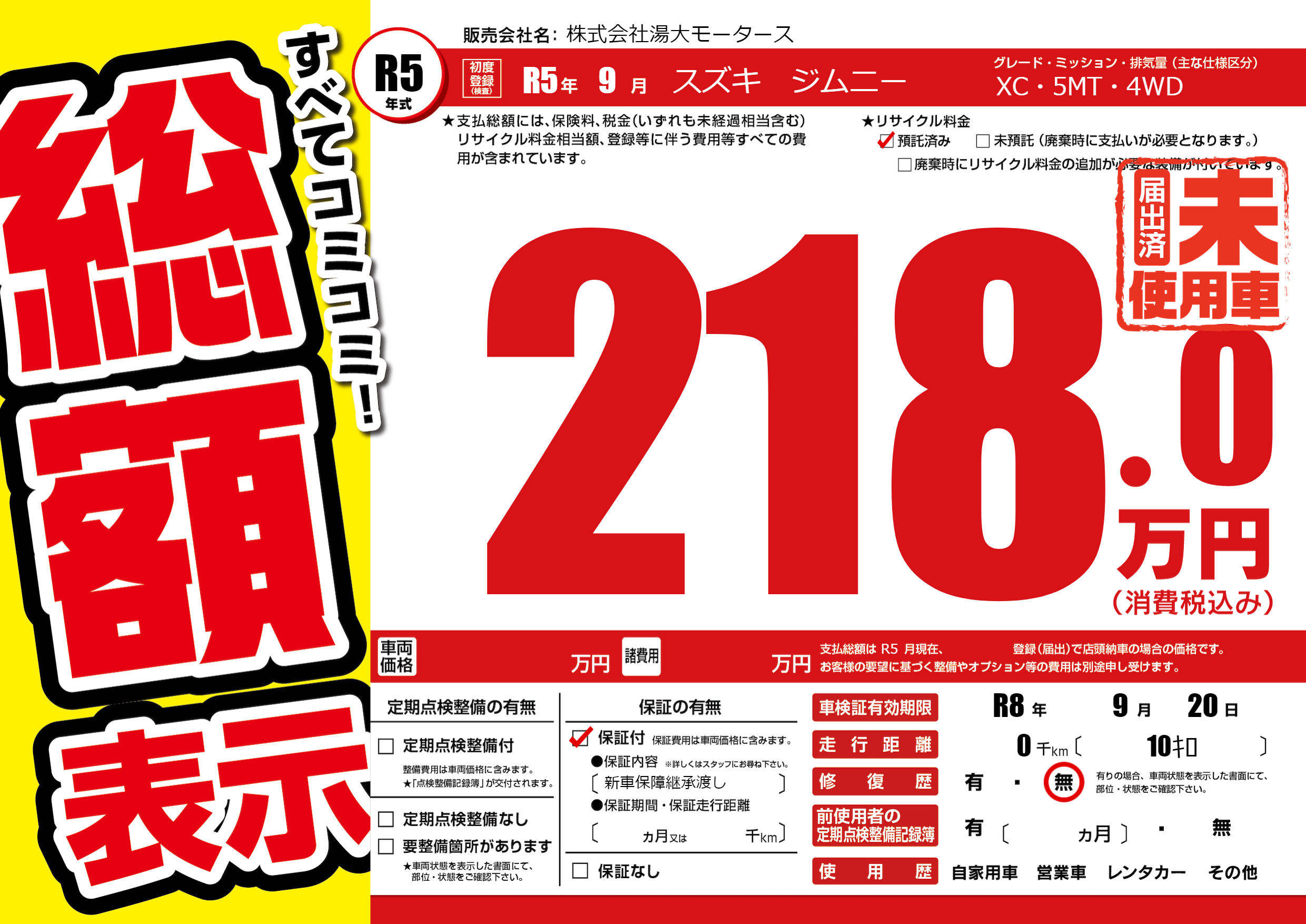 なし | 車検制限 | R8年9月20月 |
