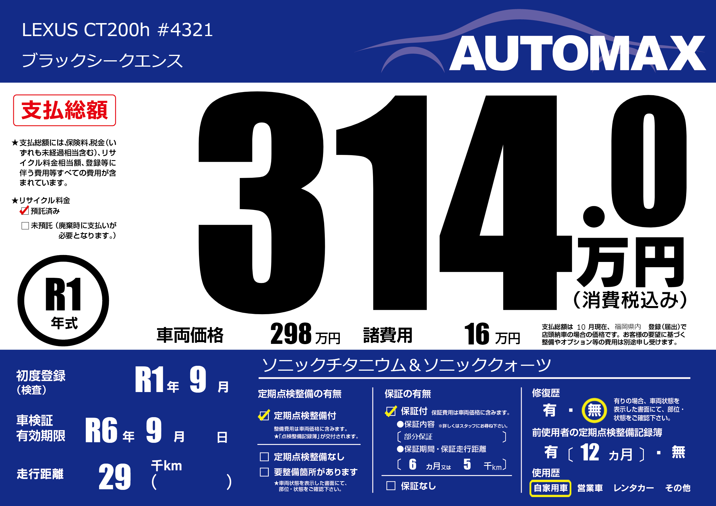| 車検制限 | R6年 9月 - 日 | ||