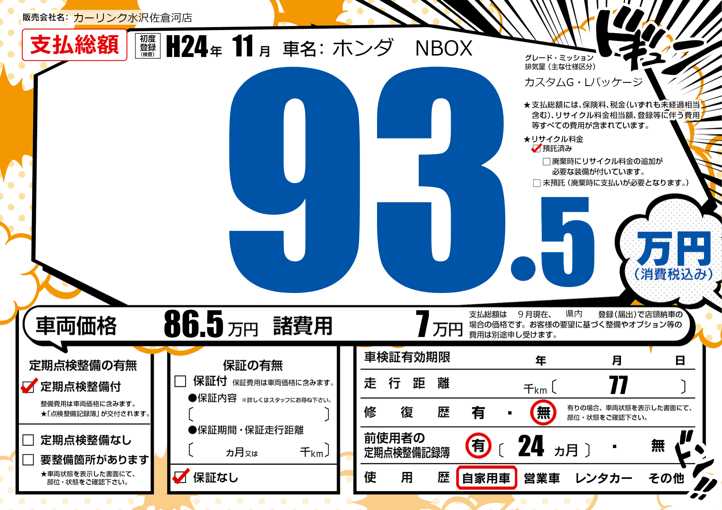 | 走行キロ | - | 初年度登録 | H24年11月 |