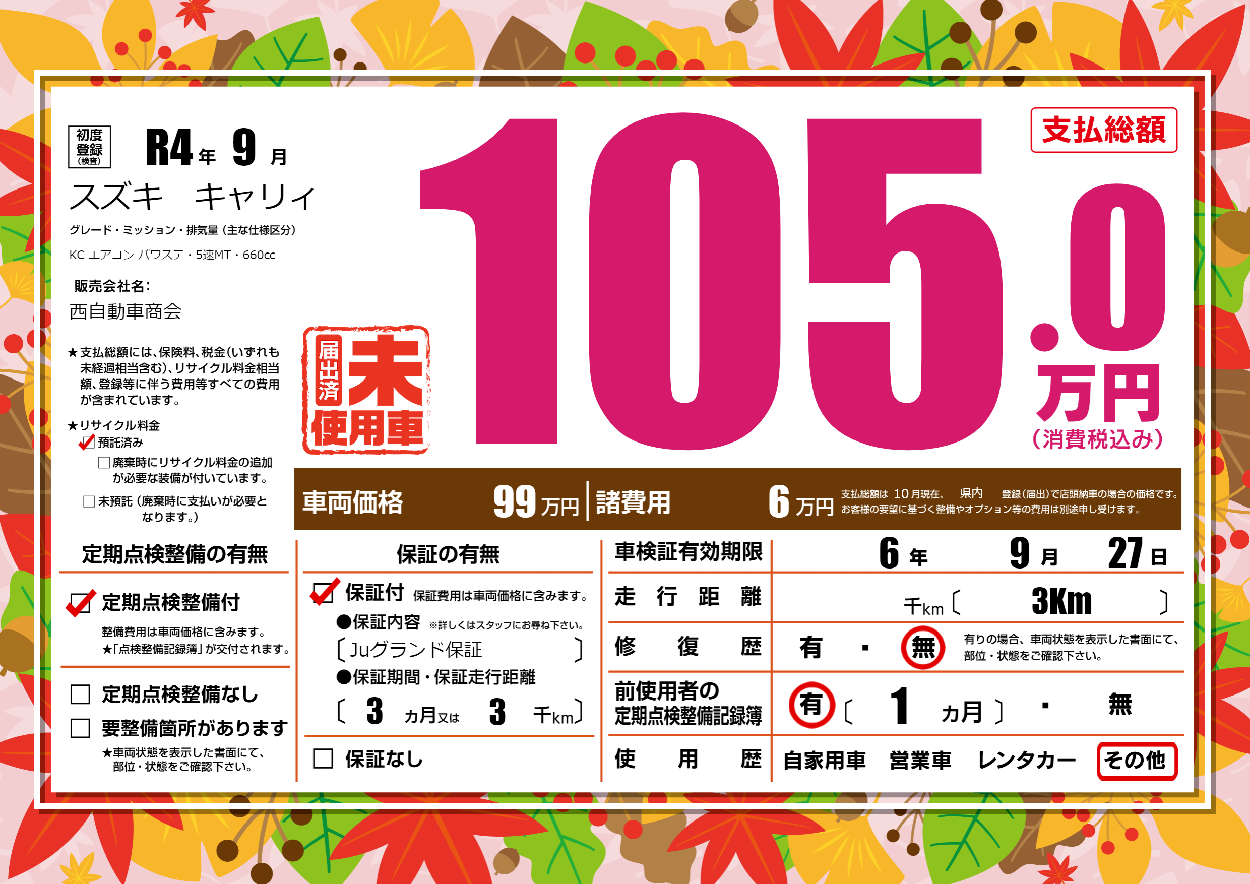 | 走行キロ | - | 初年度登録 | R4年9月 |