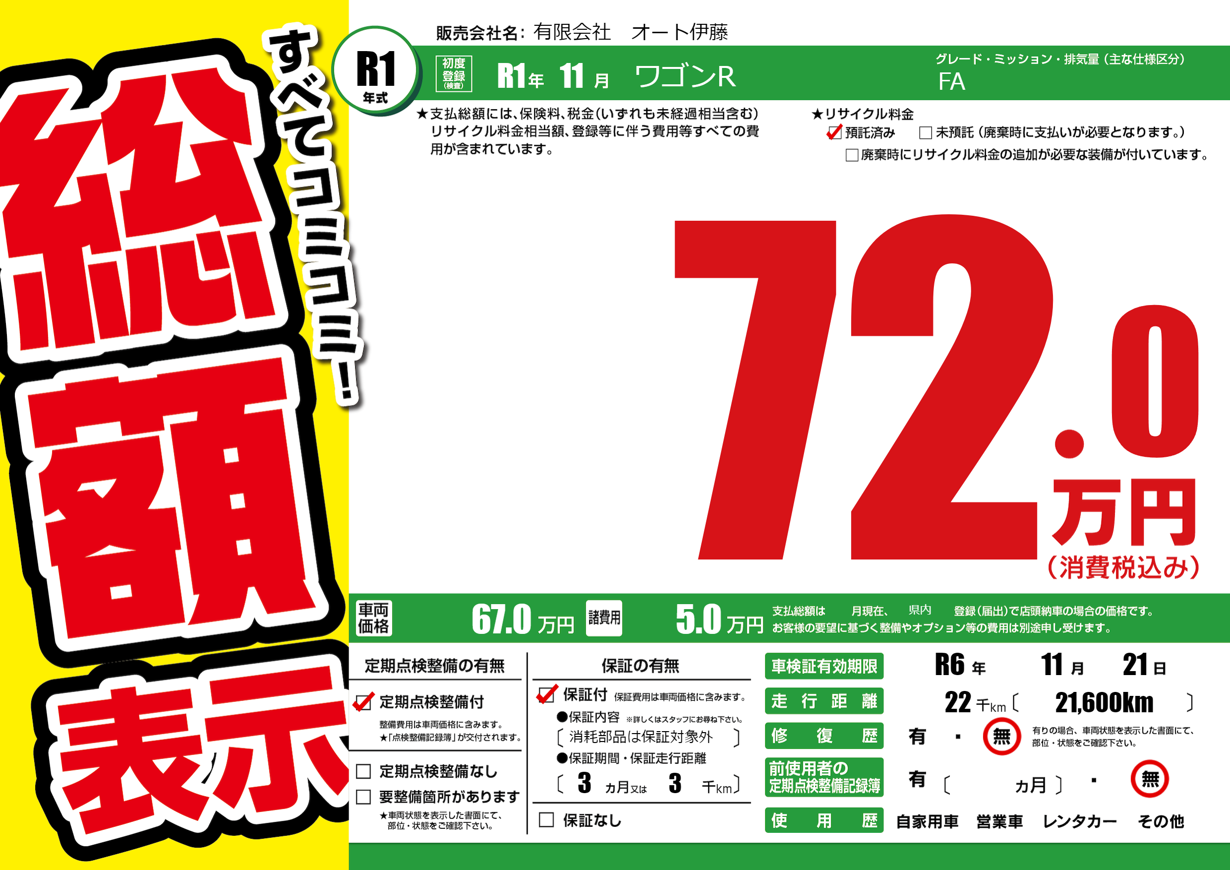 なし | 車検制限 | R6年11月21月 |