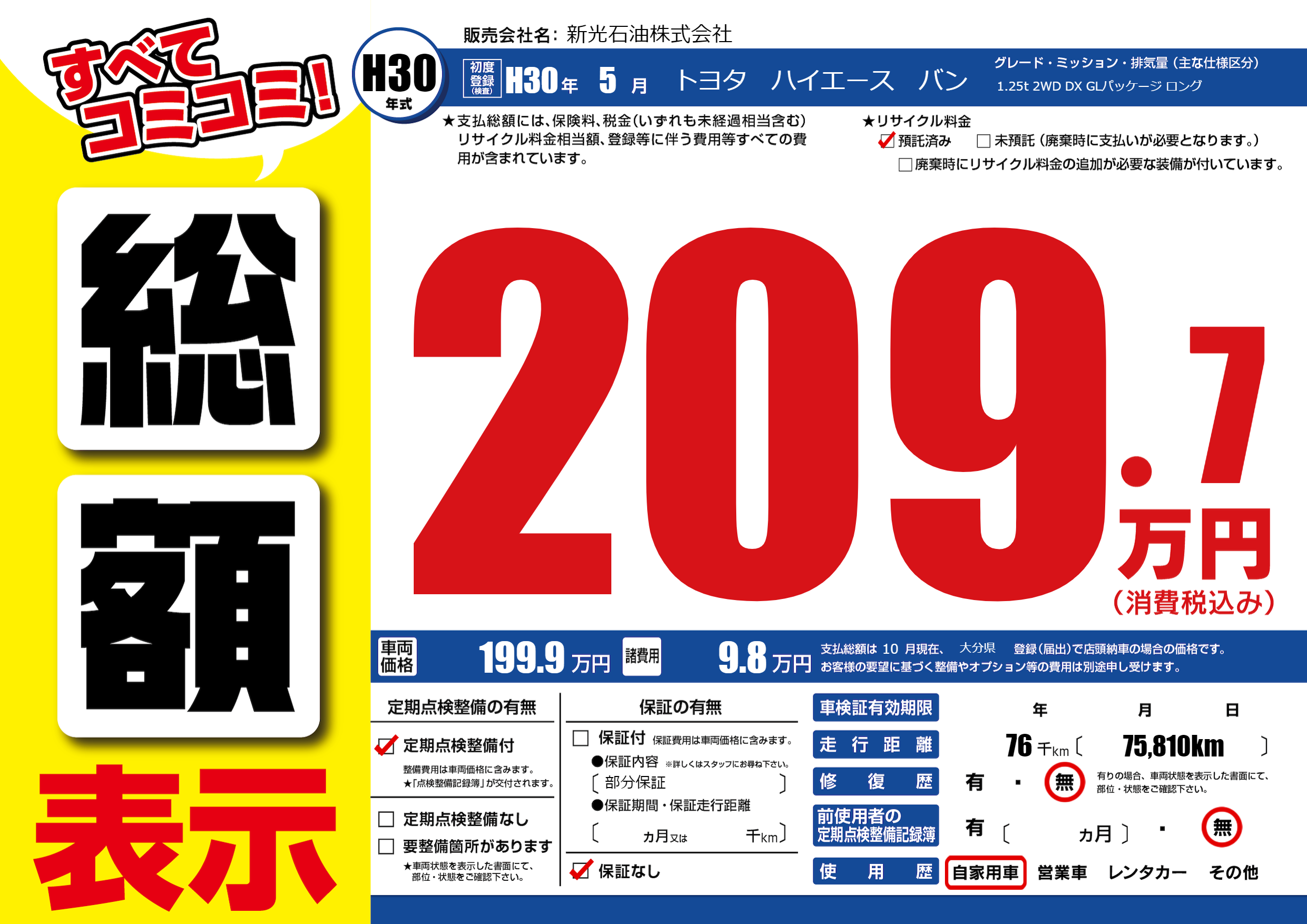 | 定期点検整備 | 定期点検整備あり | ||