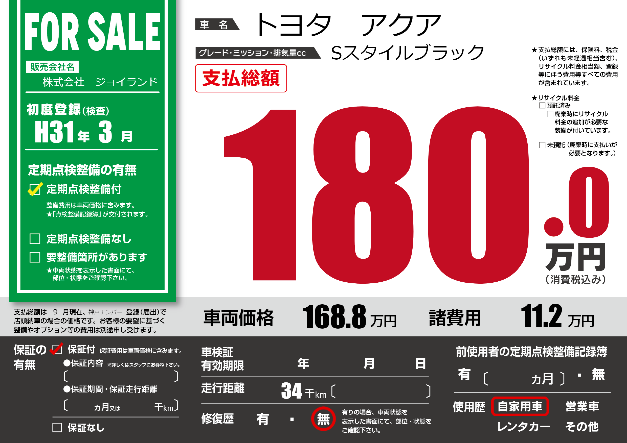 | 定期点検整備 | 定期点検整備あり | ||