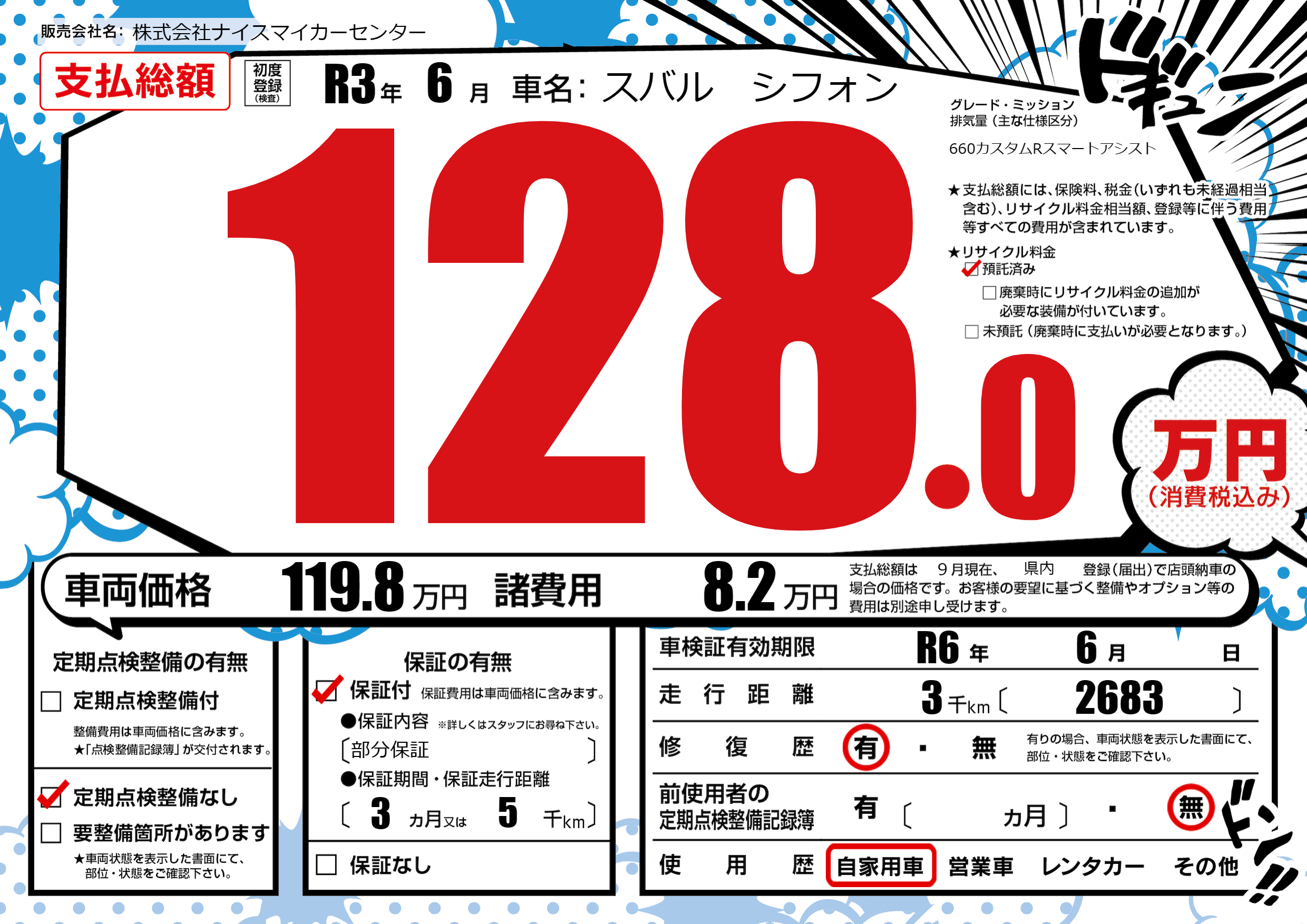 | 車検制限 | R6年 6月 - 日 | ||