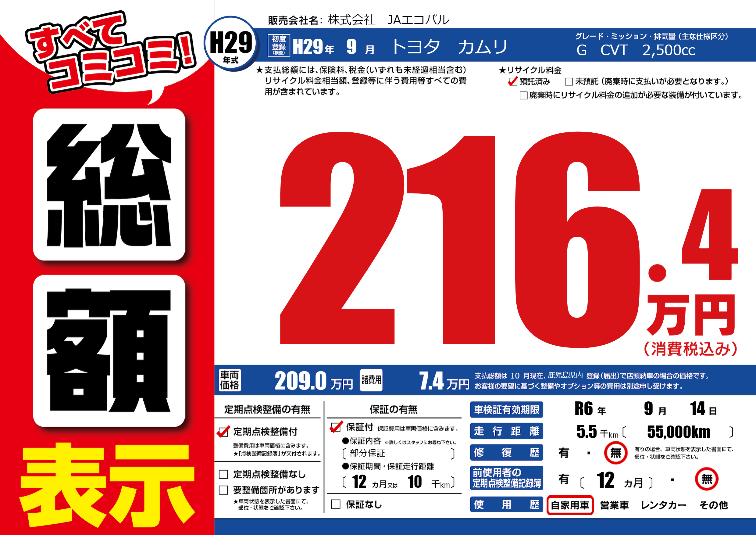 | 車検制限 | R6年 9月 14日 | ||