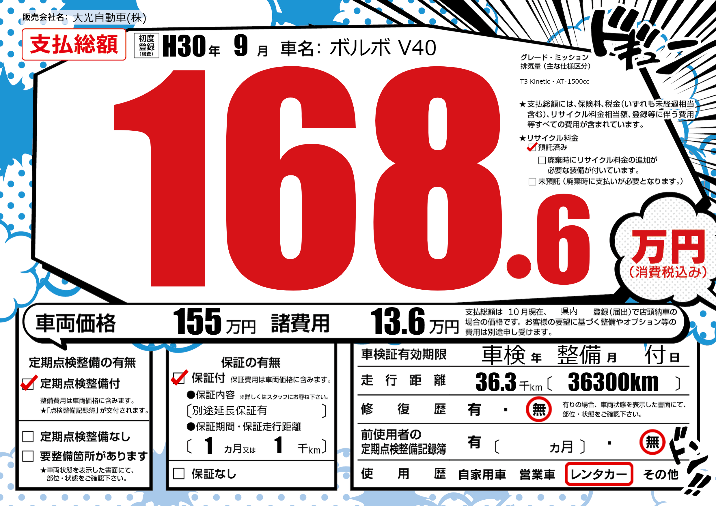 | 車名 | ボルボ V40 | グレード ミッション 排気量 |