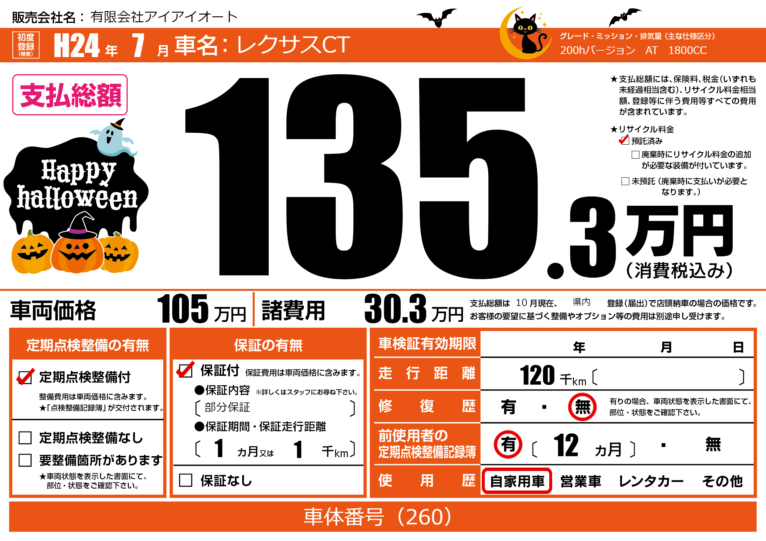 | 走行キロ | 12万km | 初年度登録 | H24年7月 |