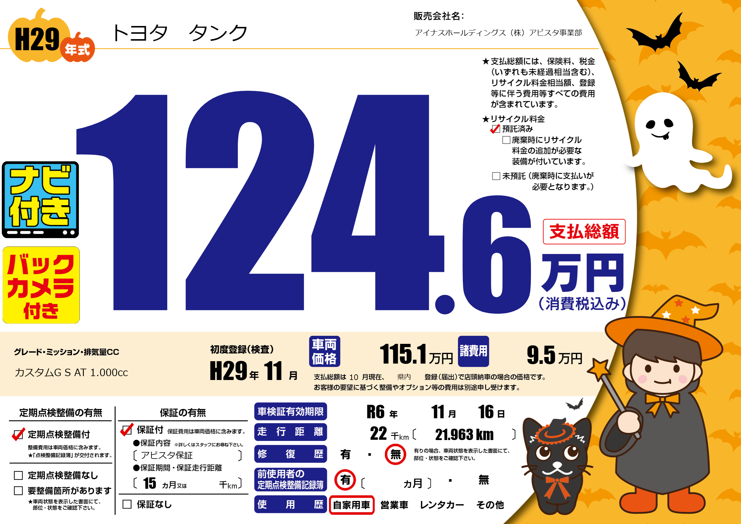なし | 車検制限 | R6年11月16月 |