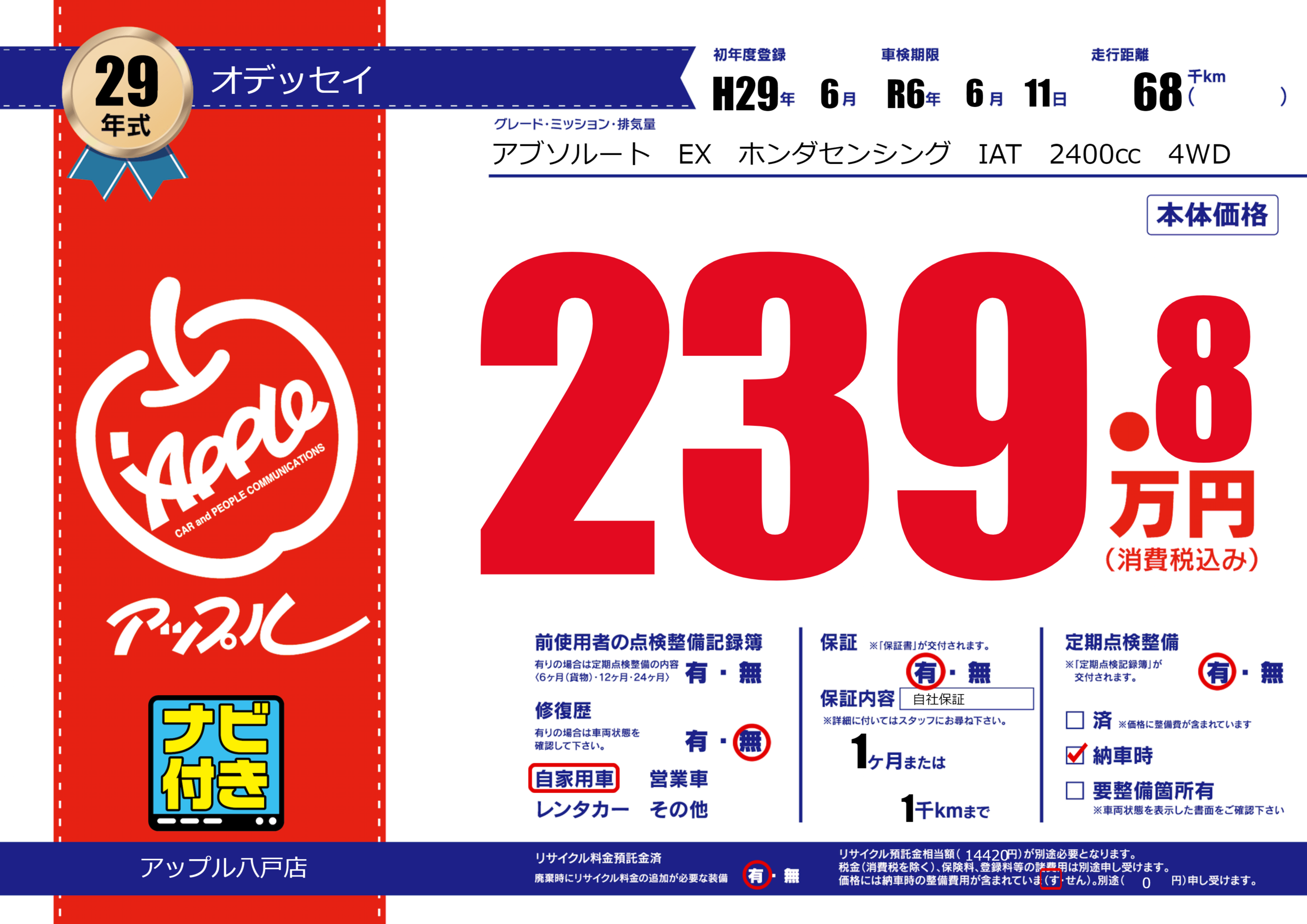 | 車名 | オデッセイ | グレード ミッション 排気量 |