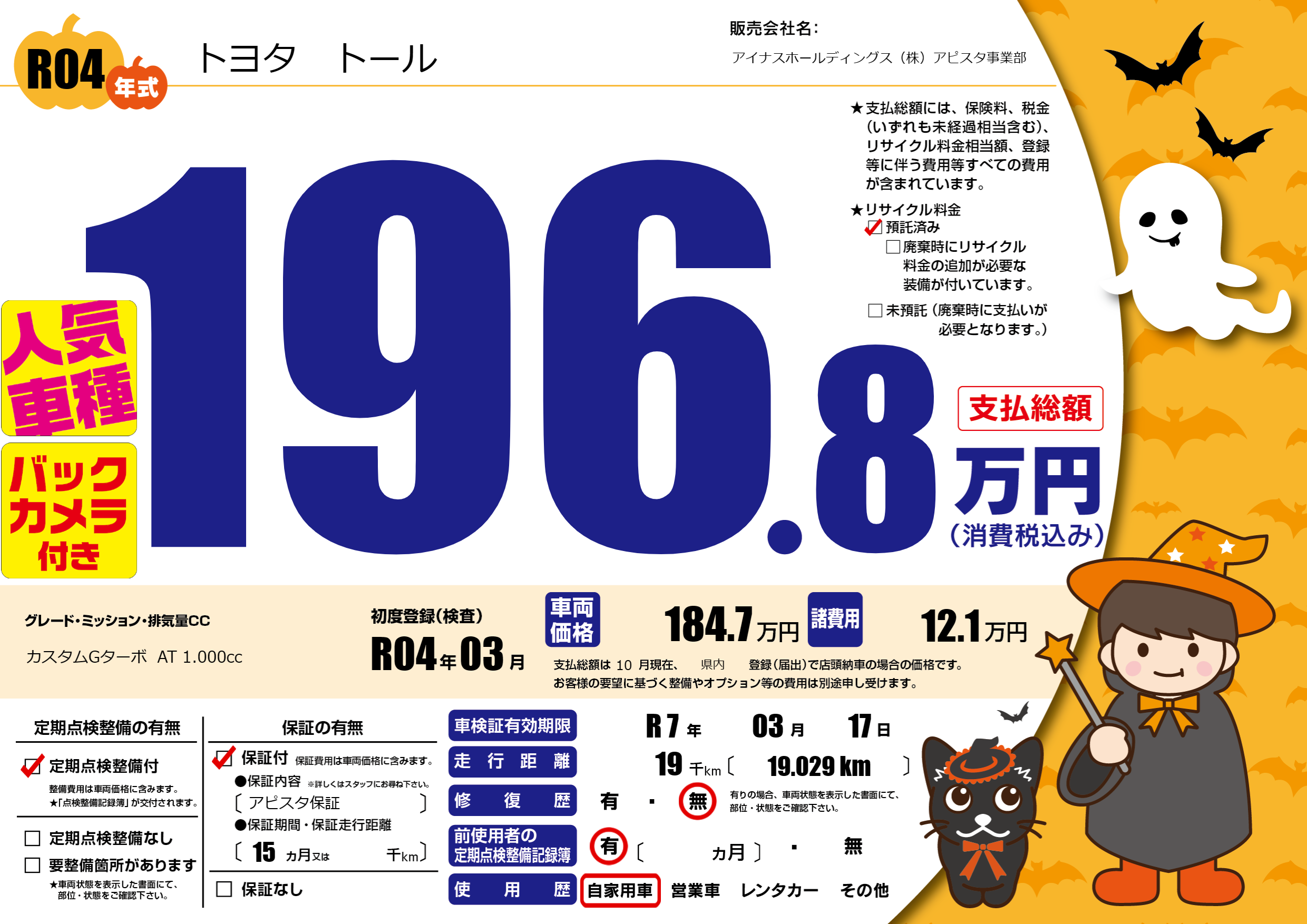 | 走行キロ | 1.9万km | 初年度登録 | R04年03月 |