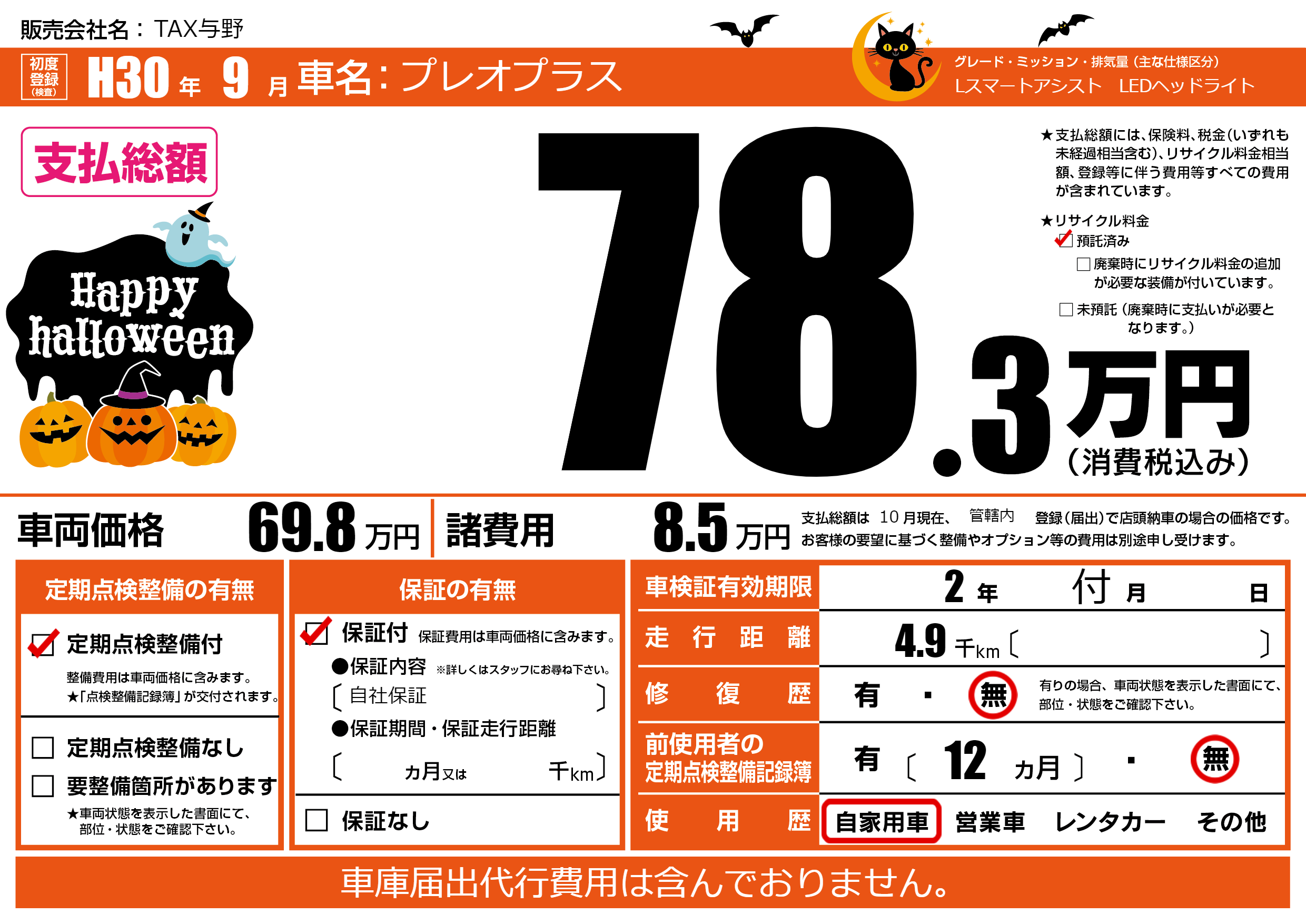 | 定期点検整備 | 定期点検整備あり | ||