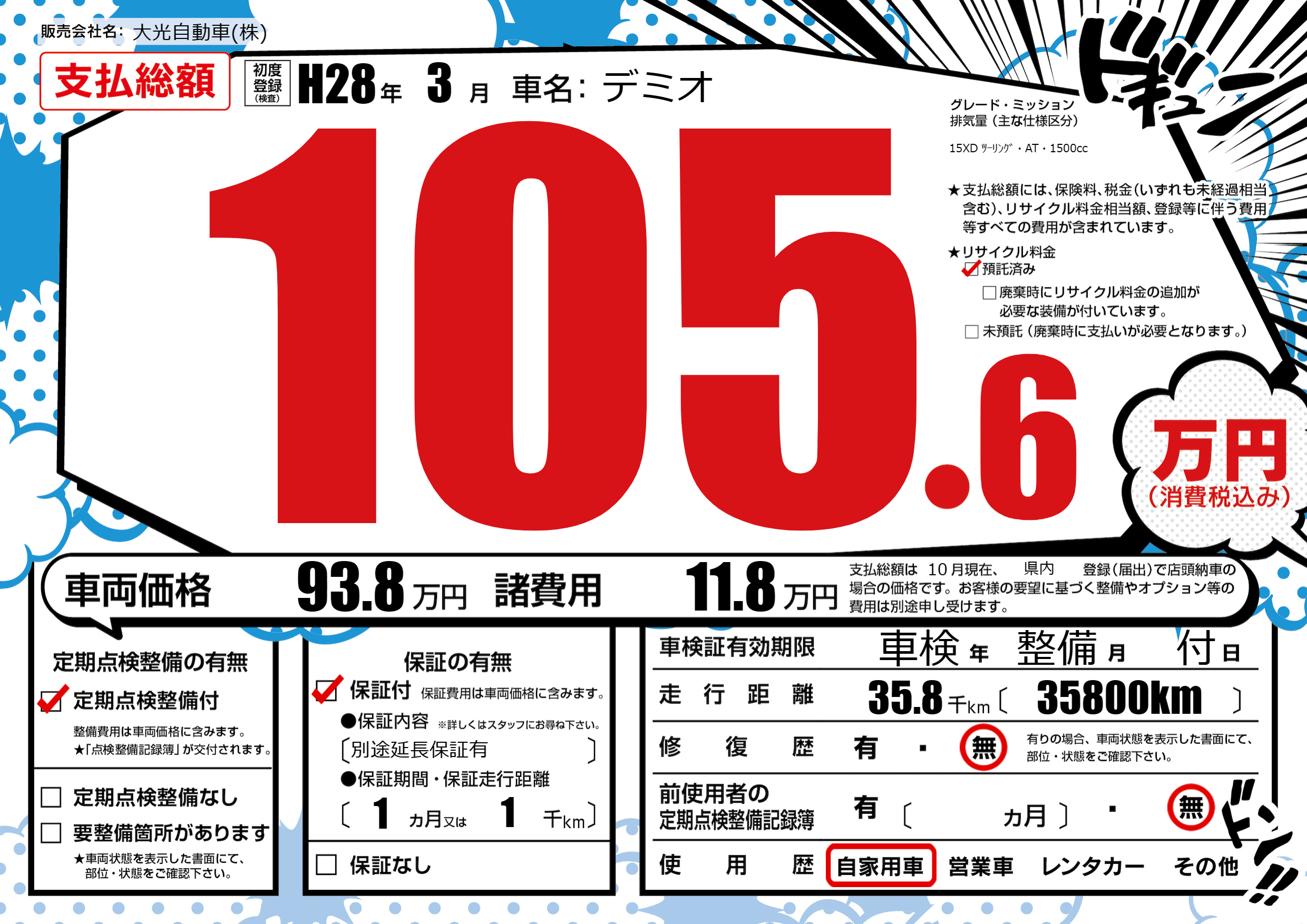 | 車名 | デミオ | グレード ミッション 排気量 |