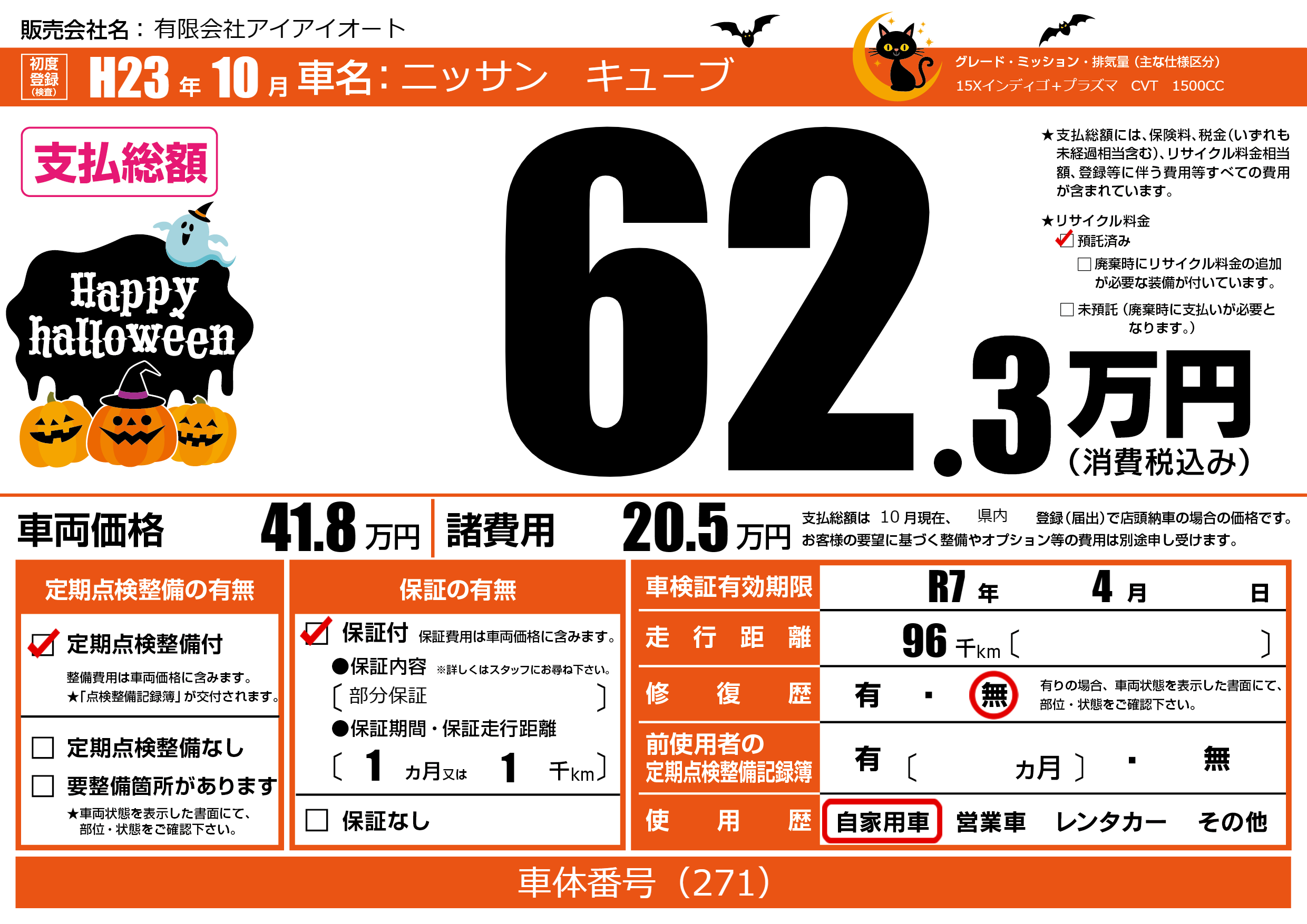 なし | 車検制限 | R7年4月---月 |