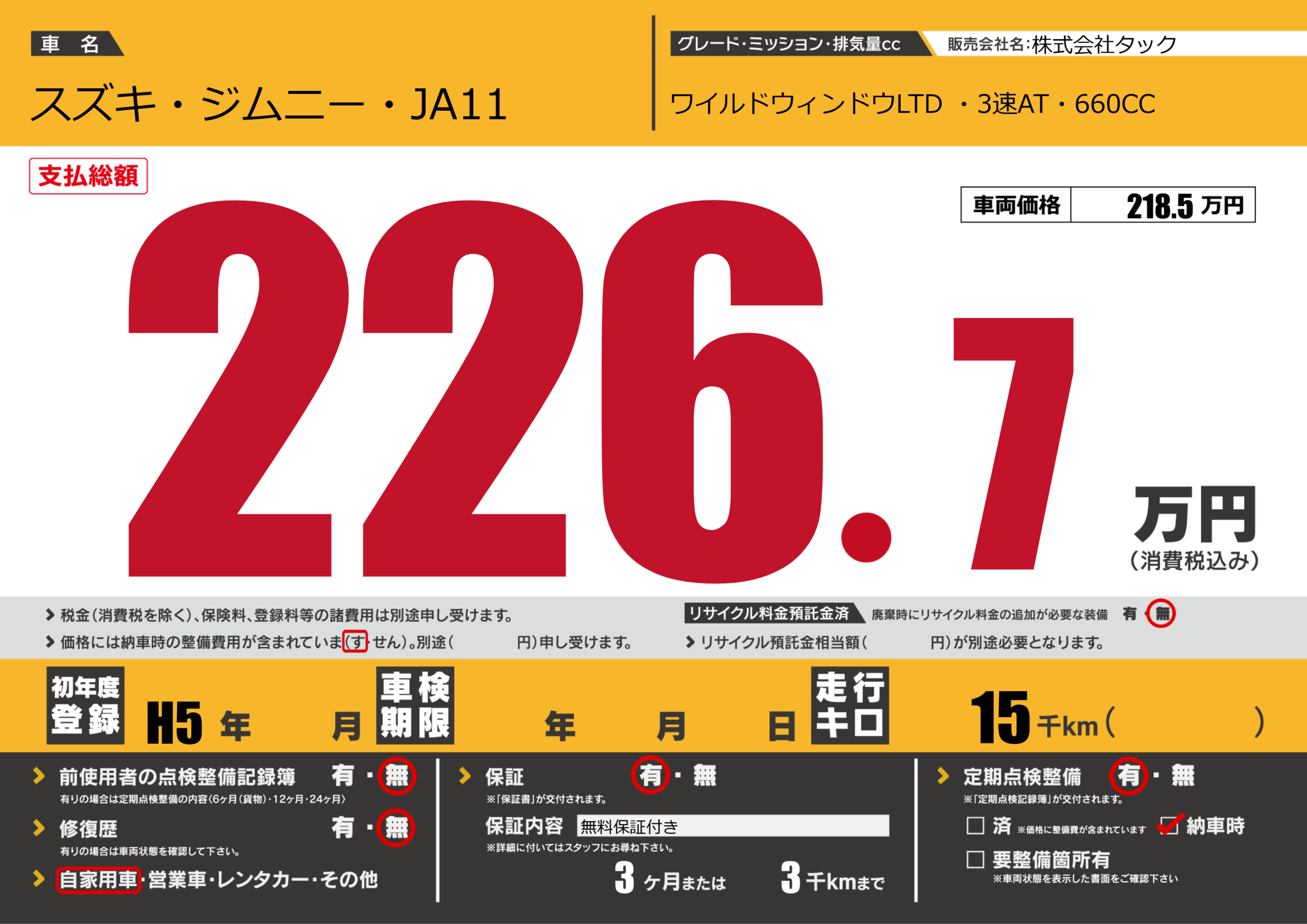 保証なし 保証内容(無料保証付き) 3ヶ月または(3)千kmまで |