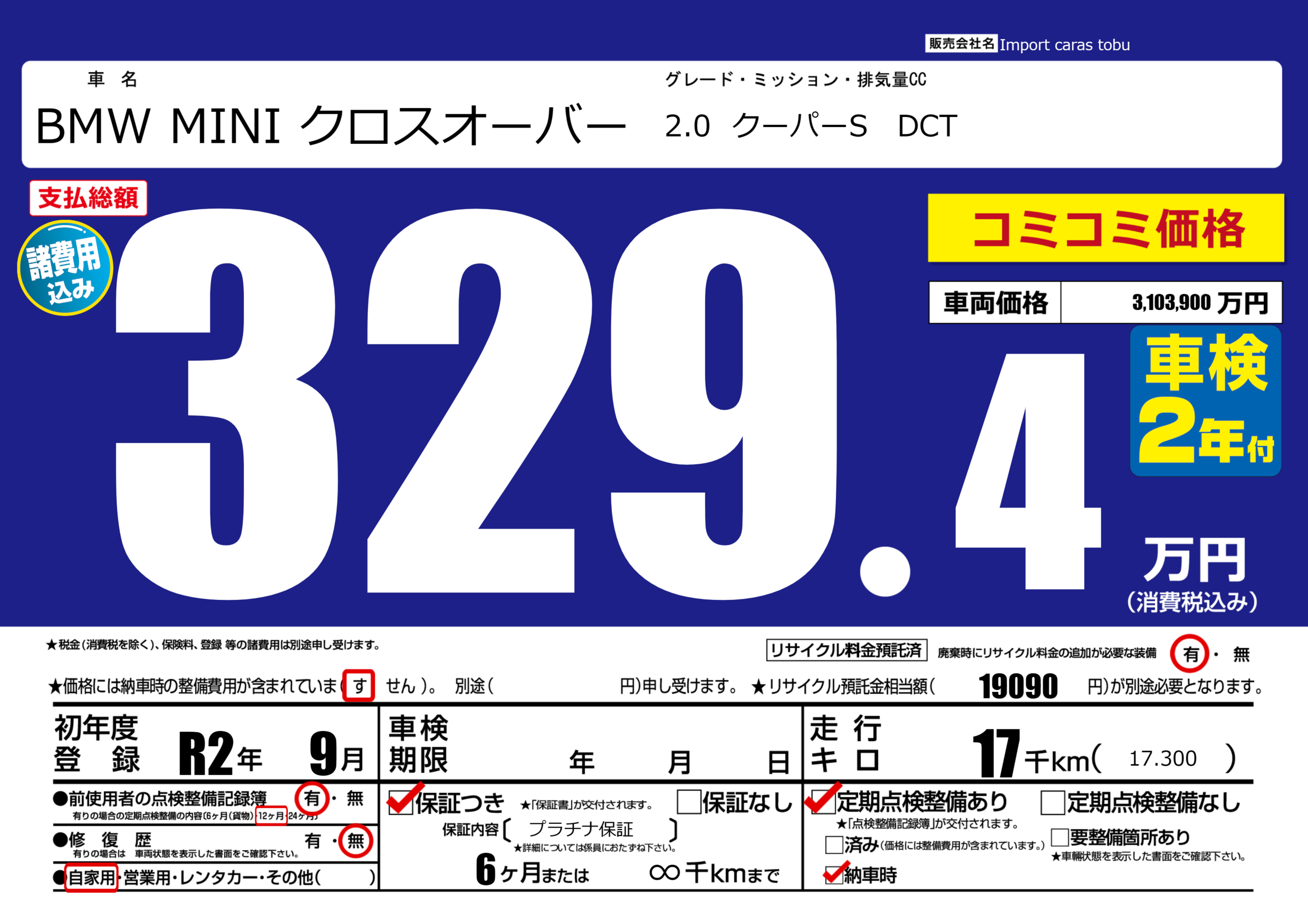 保証付き 保証内容( プラチナ保証) 6ヶ月または(∞)千kmまで |