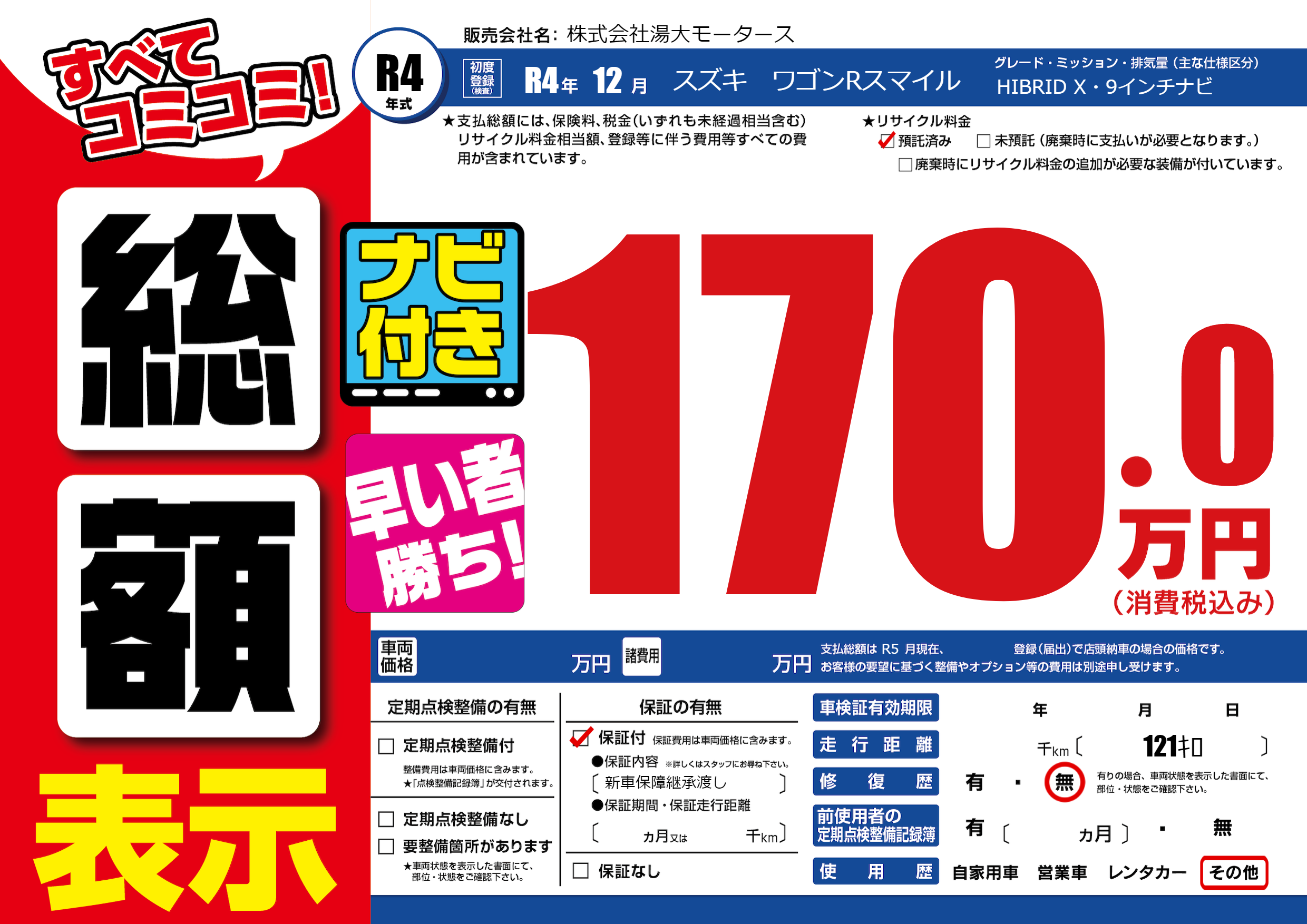 | 車名 | スズキ ワゴンRスマイル | グレード ミッション 排気量 |