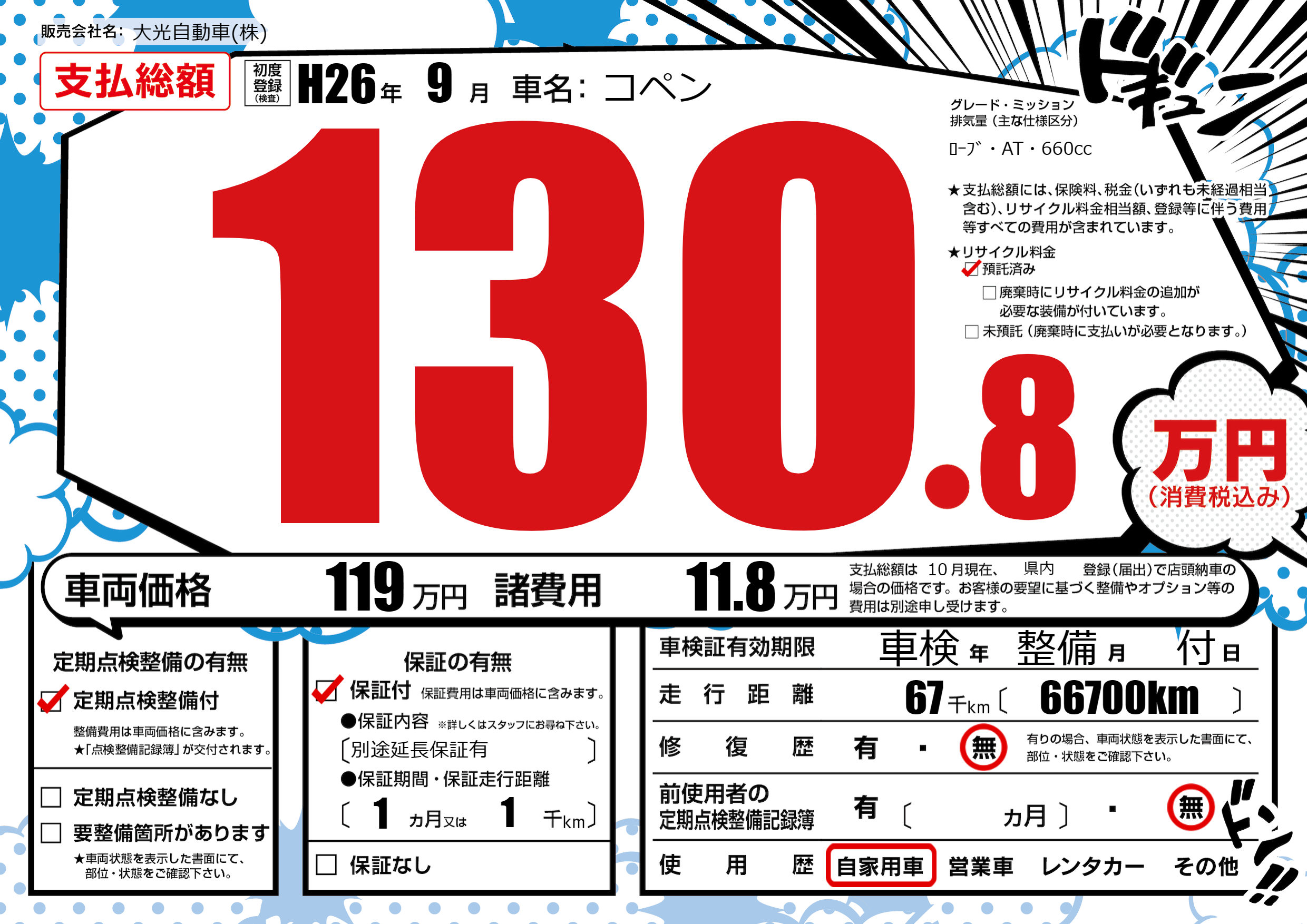 | 車名 | コペン | グレード ミッション 排気量 |