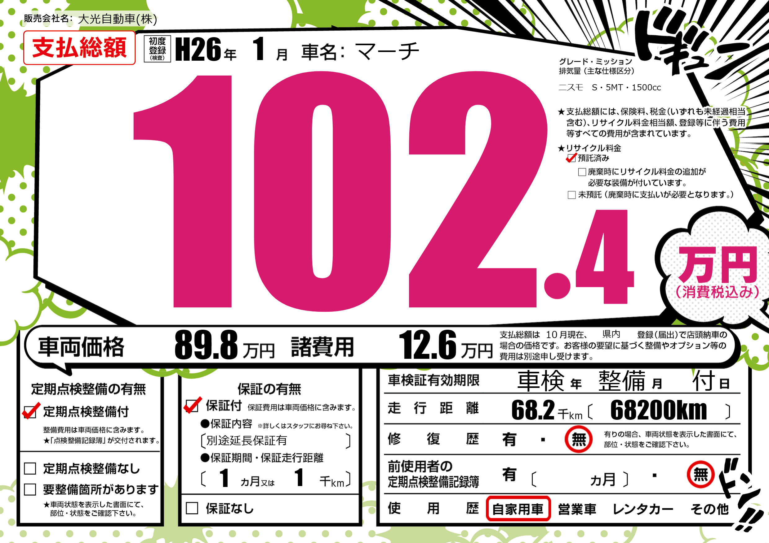 | 車名 | マーチ | グレード ミッション 排気量 |