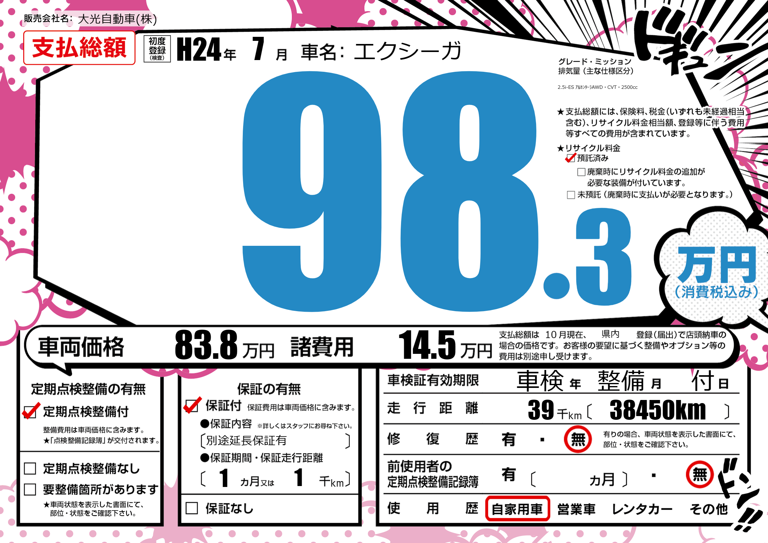| 車名 | エクシーガ | グレード ミッション 排気量 |