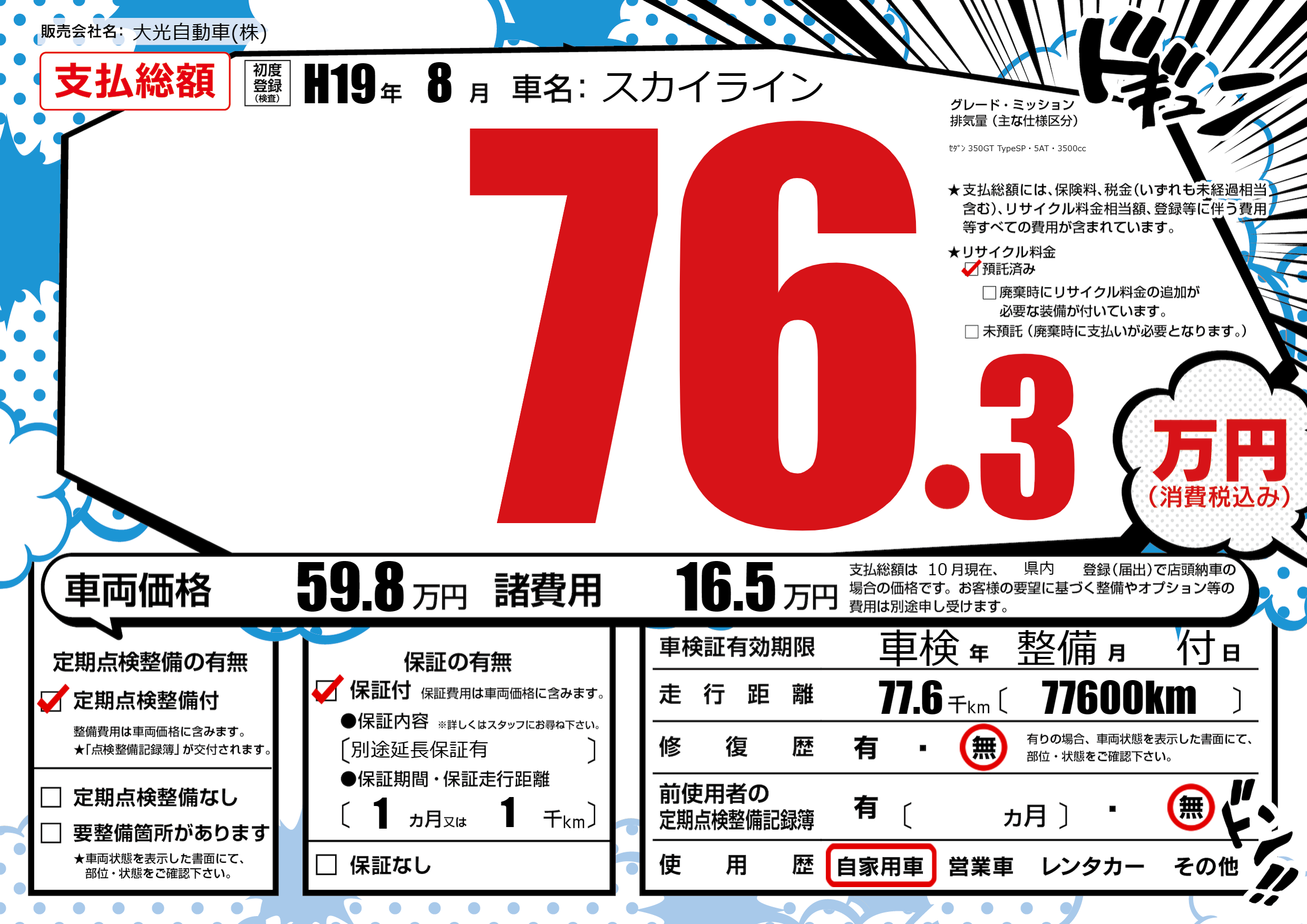 | 定期点検整備 | 定期点検整備あり | ||
