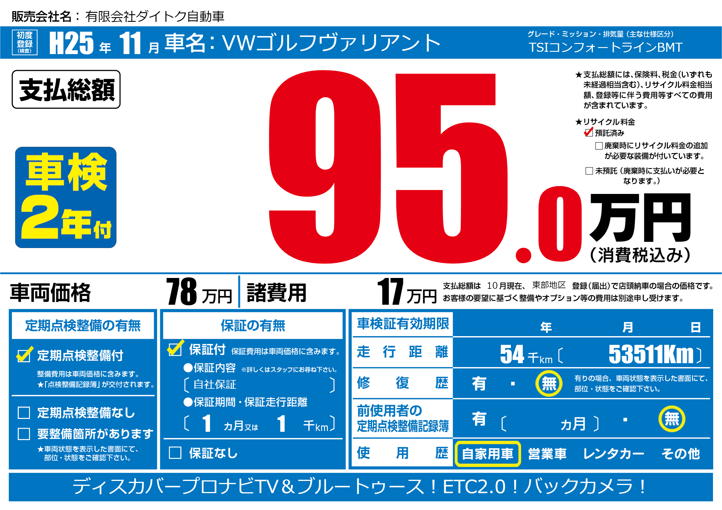| 定期点検整備 | 定期点検整備あり | ||