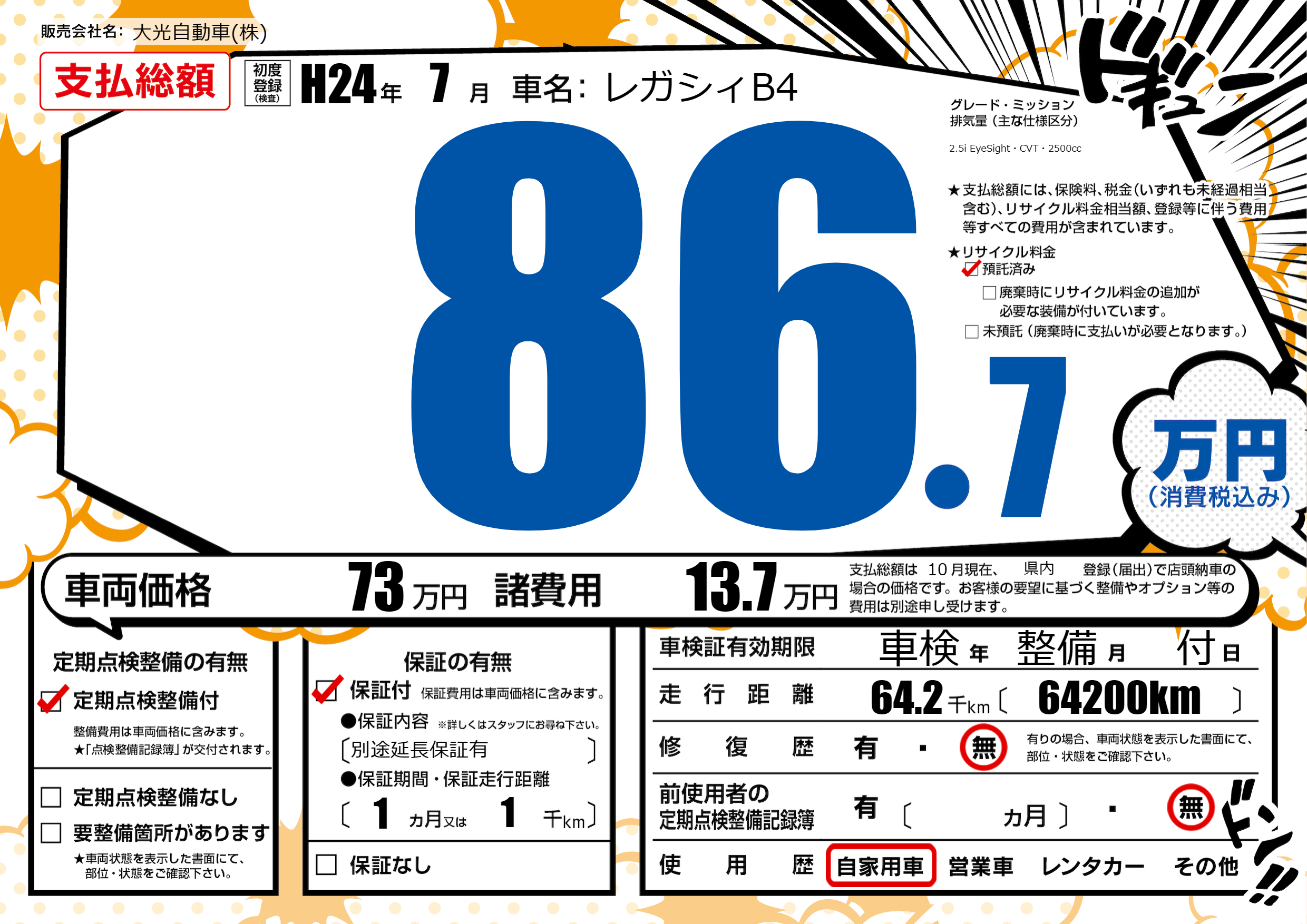 | 定期点検整備 | 定期点検整備あり | ||