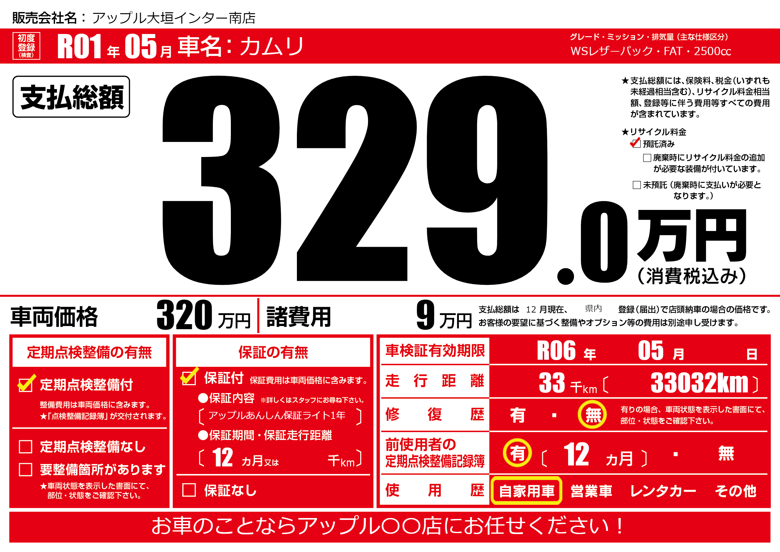 | 定期点検整備 | 定期点検整備あり | ||