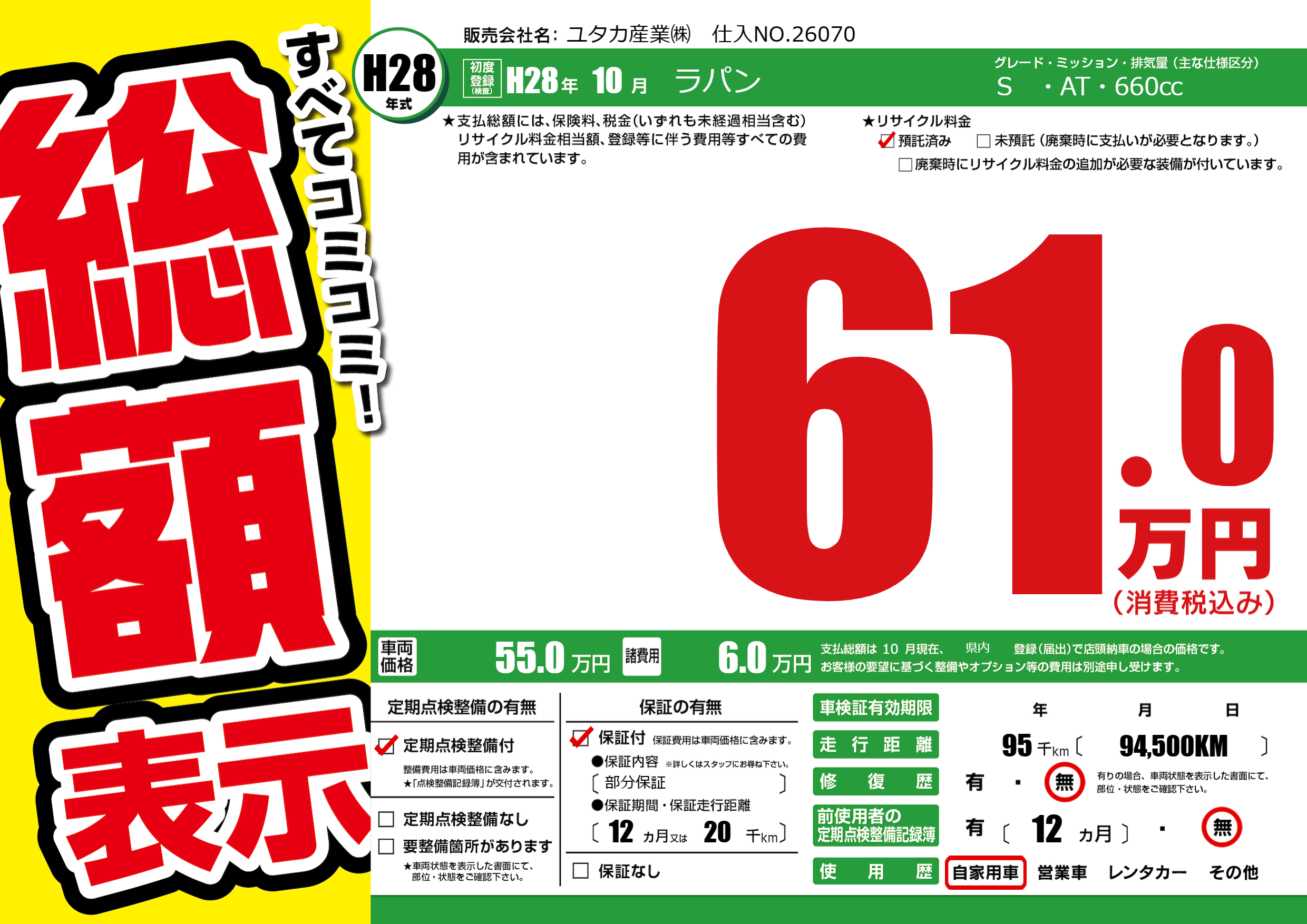 | 車名 | ラパン | グレード ミッション 排気量 |