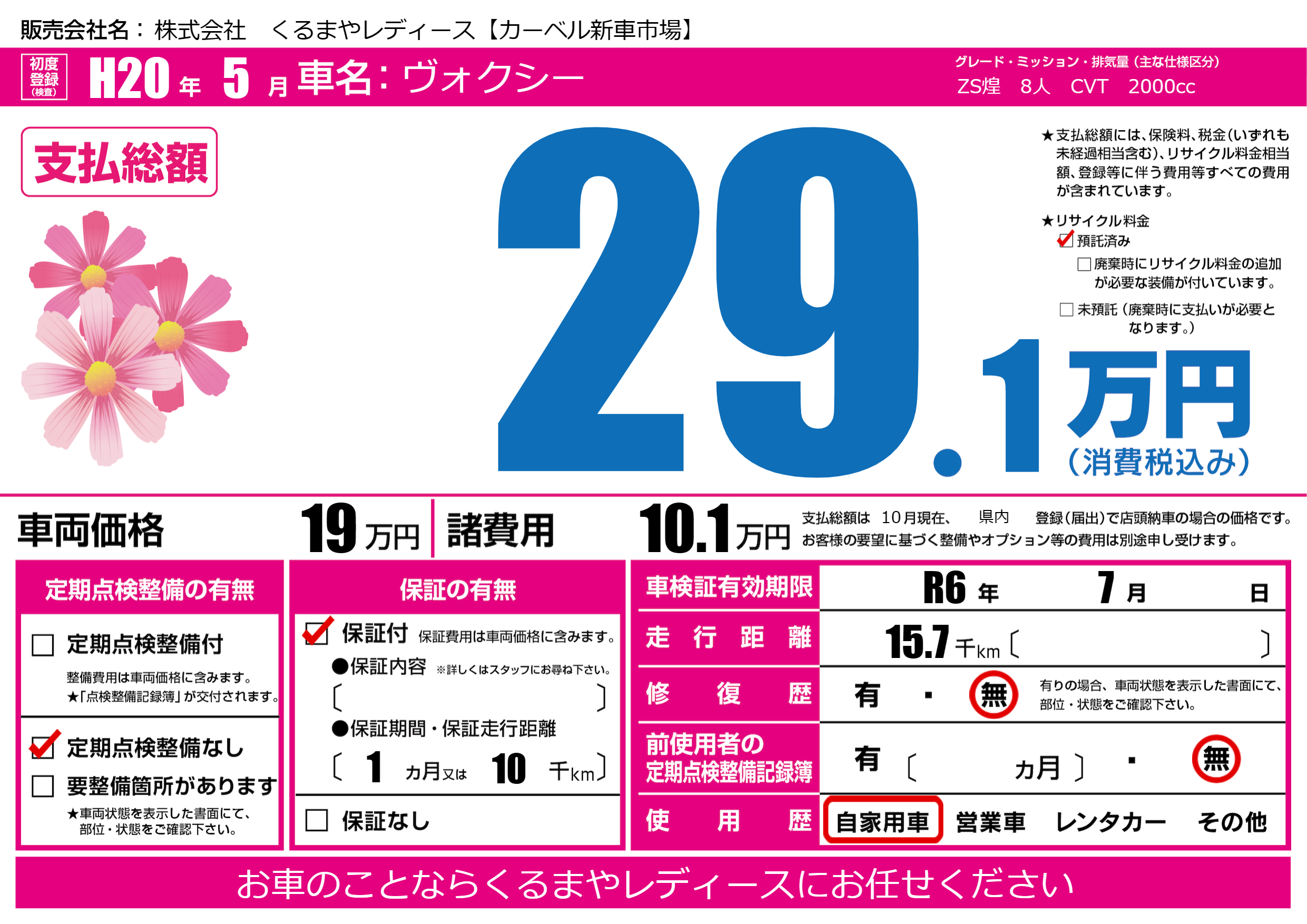 | 車名 | ヴォクシー | グレード ミッション 排気量 |