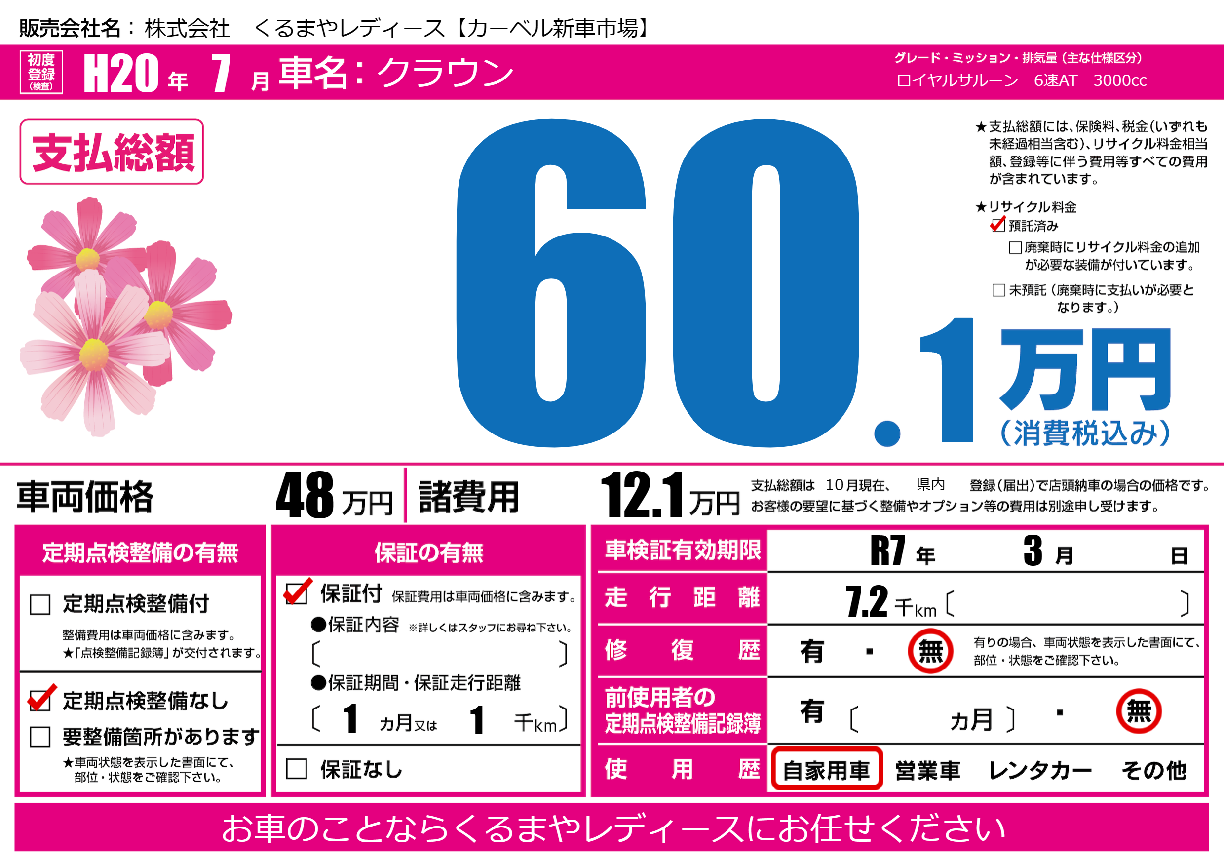 | 車名 | クラウン | グレード ミッション 排気量 |
