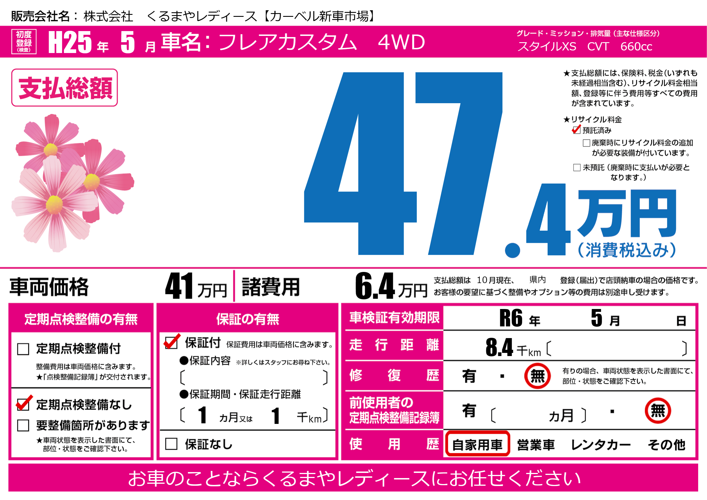 | 車検制限 | R6年 5月 - 日 | ||