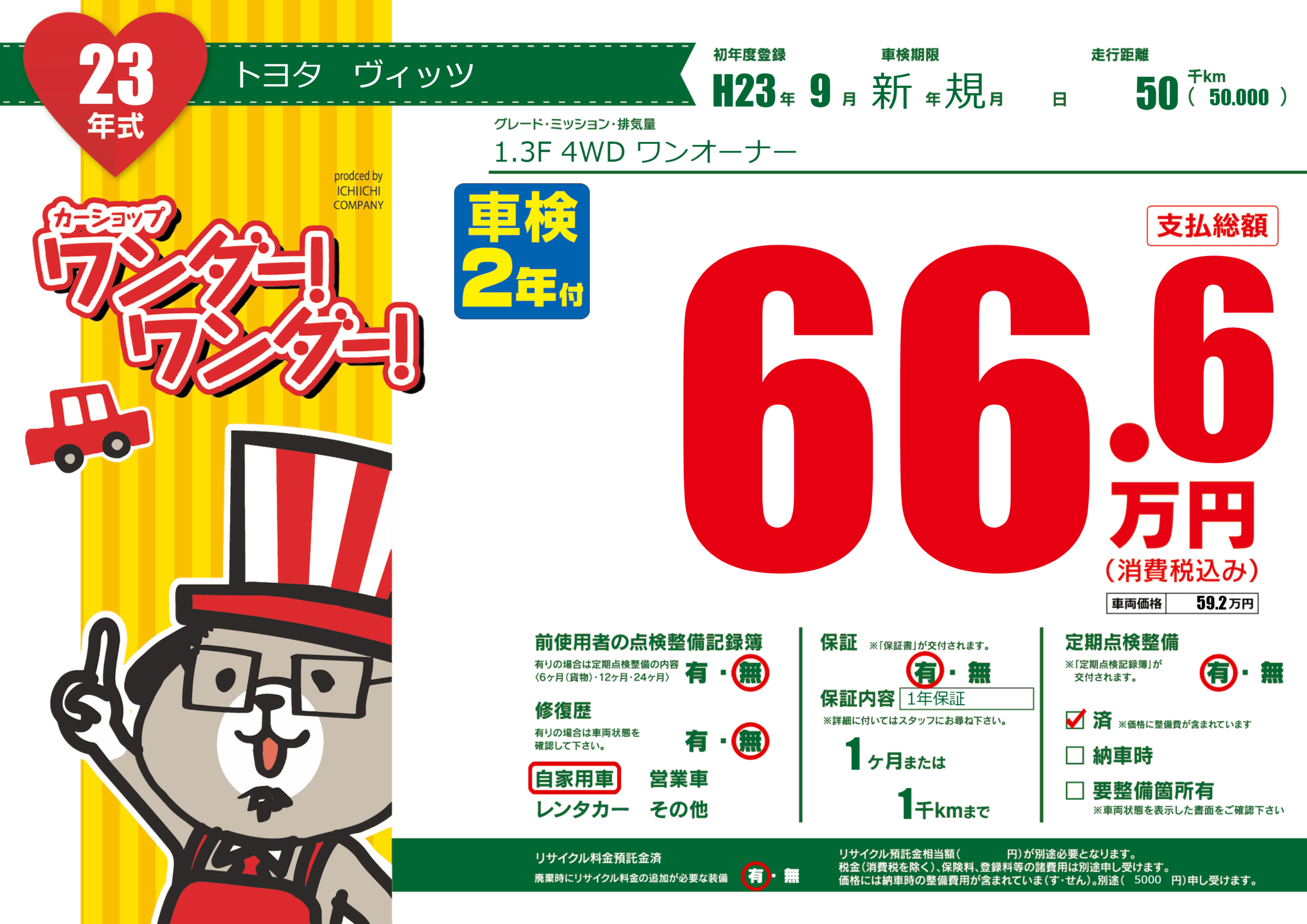 | 定期点検整備 | 定期点検整備あり 定期点検整備済み | ||