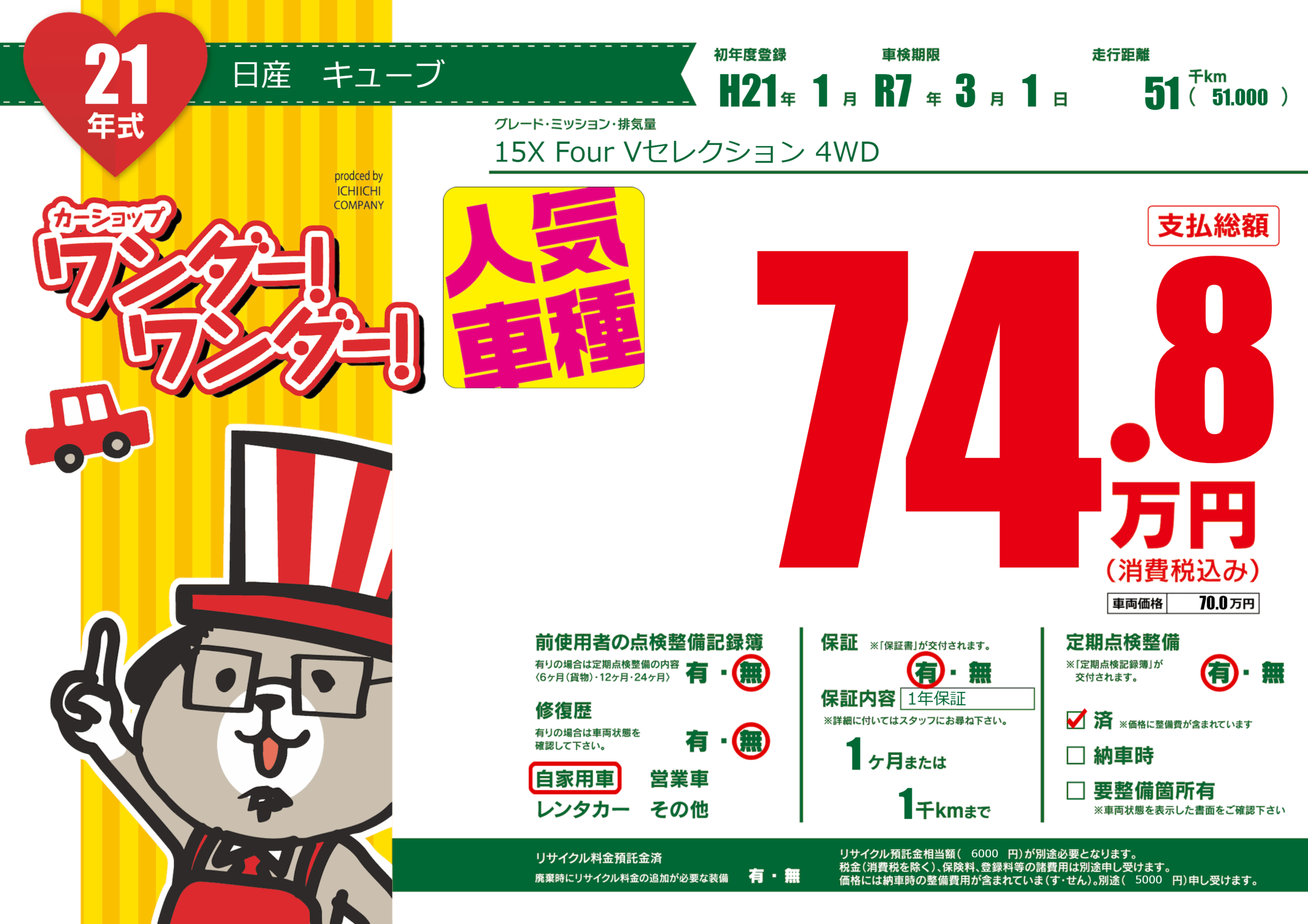 | 定期点検整備 | 定期点検整備あり 定期点検整備済み | ||