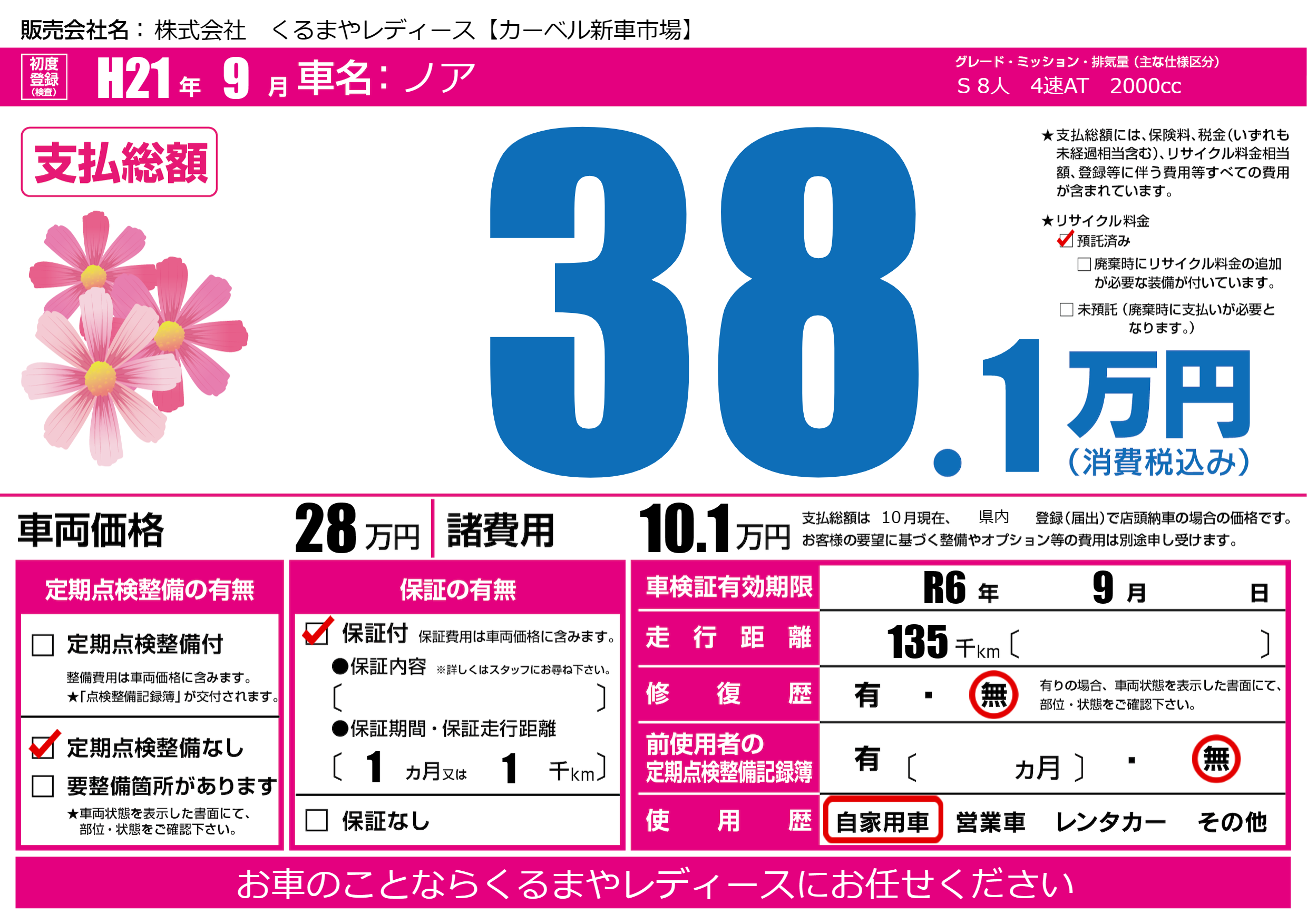 | 車検制限 | R6年 9月 - 日 | ||