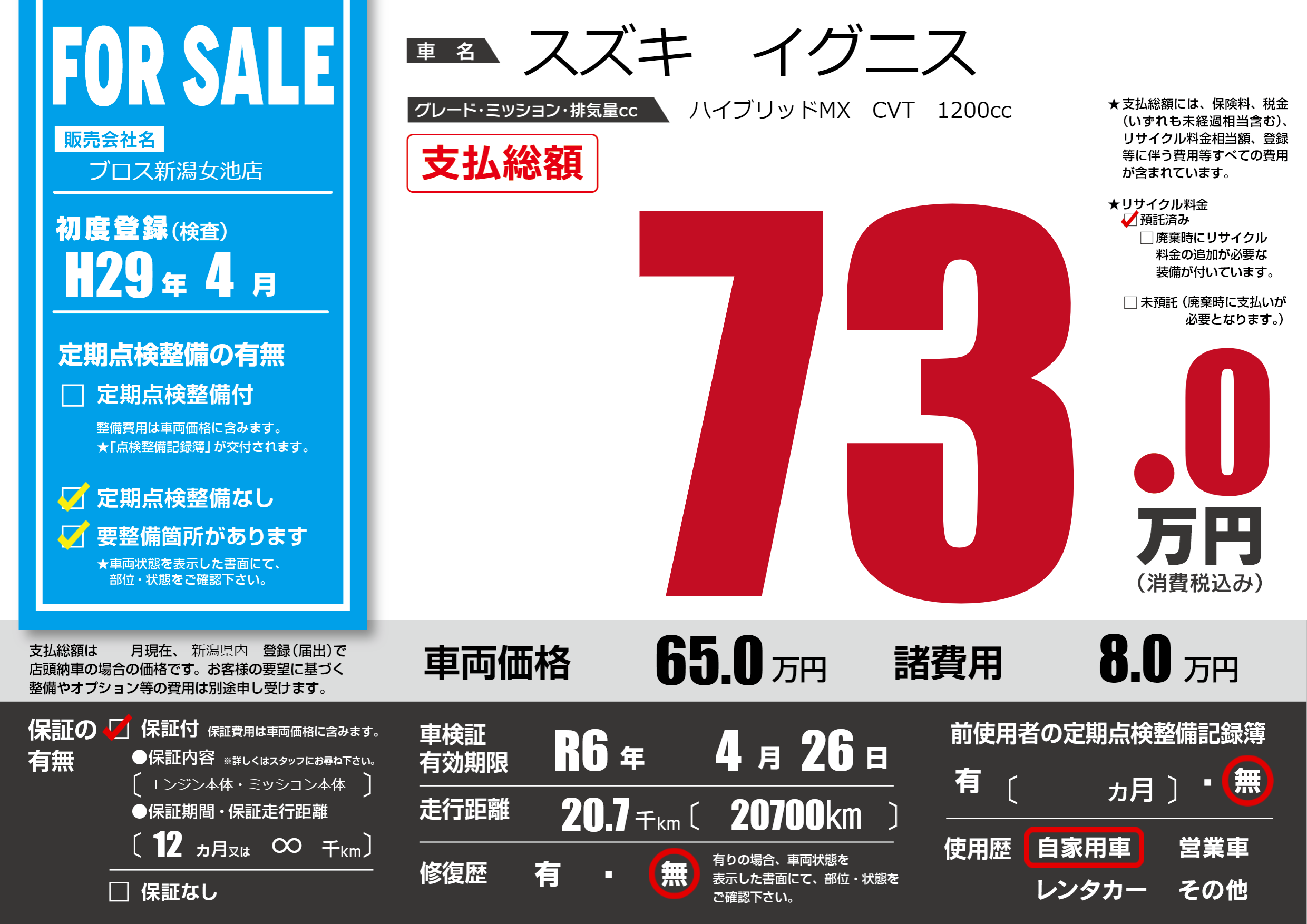 | 車名 | スズキ イグニス | グレード ミッション 排気量 |