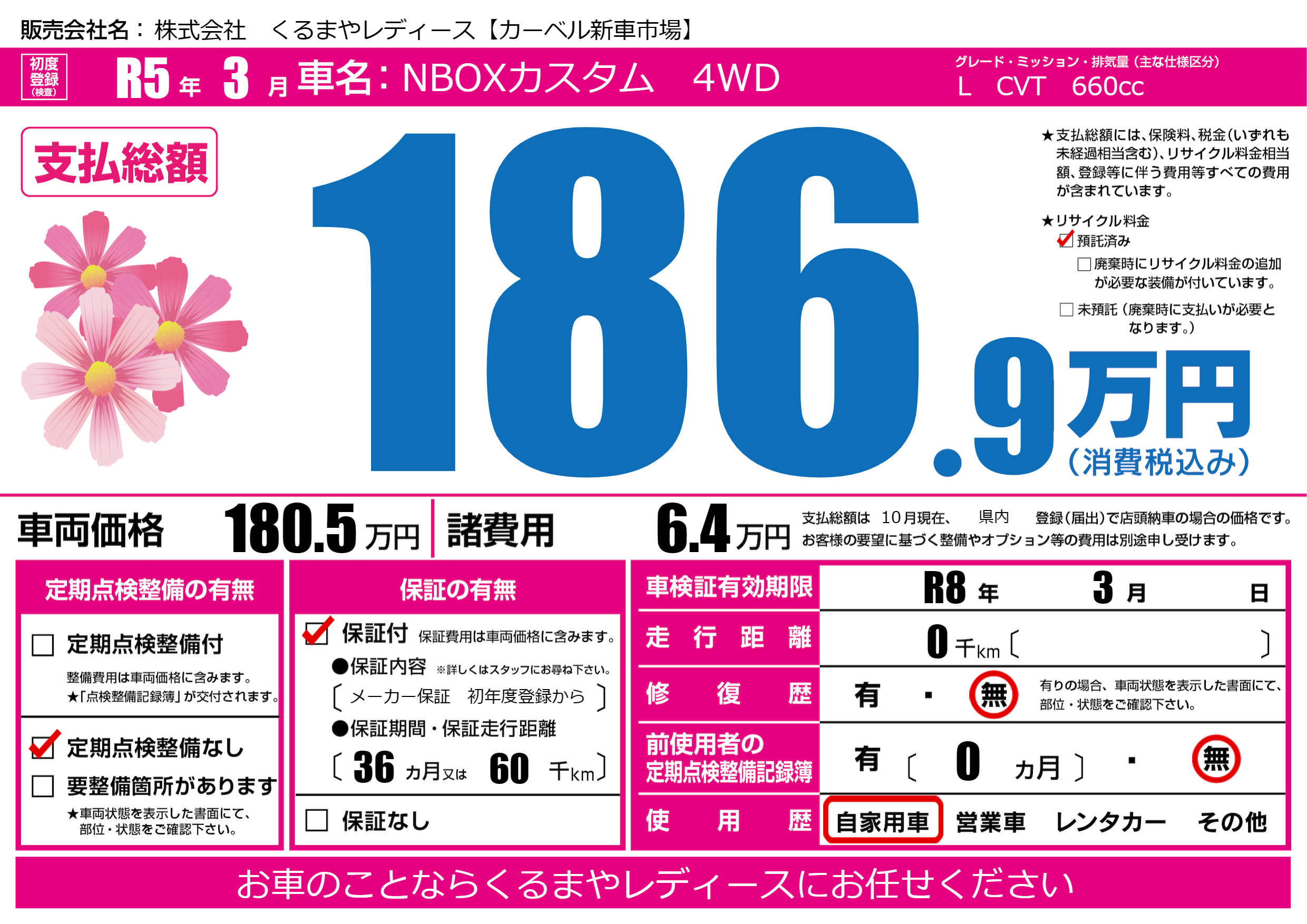 | 走行キロ | - | 初年度登録 | R5年3月 |