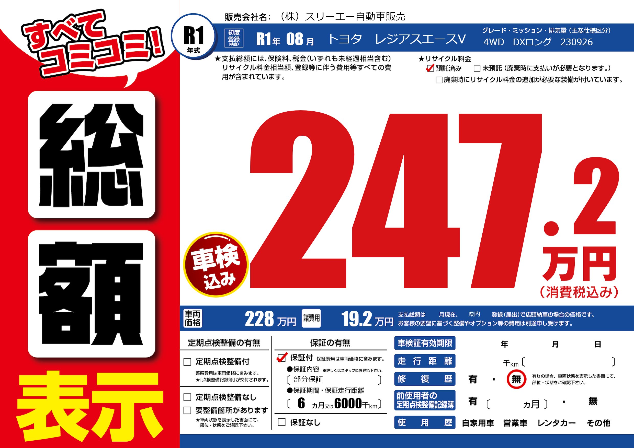 保証付き 保証内容(部分保証) 6ヶ月または(6000)千kmまで |