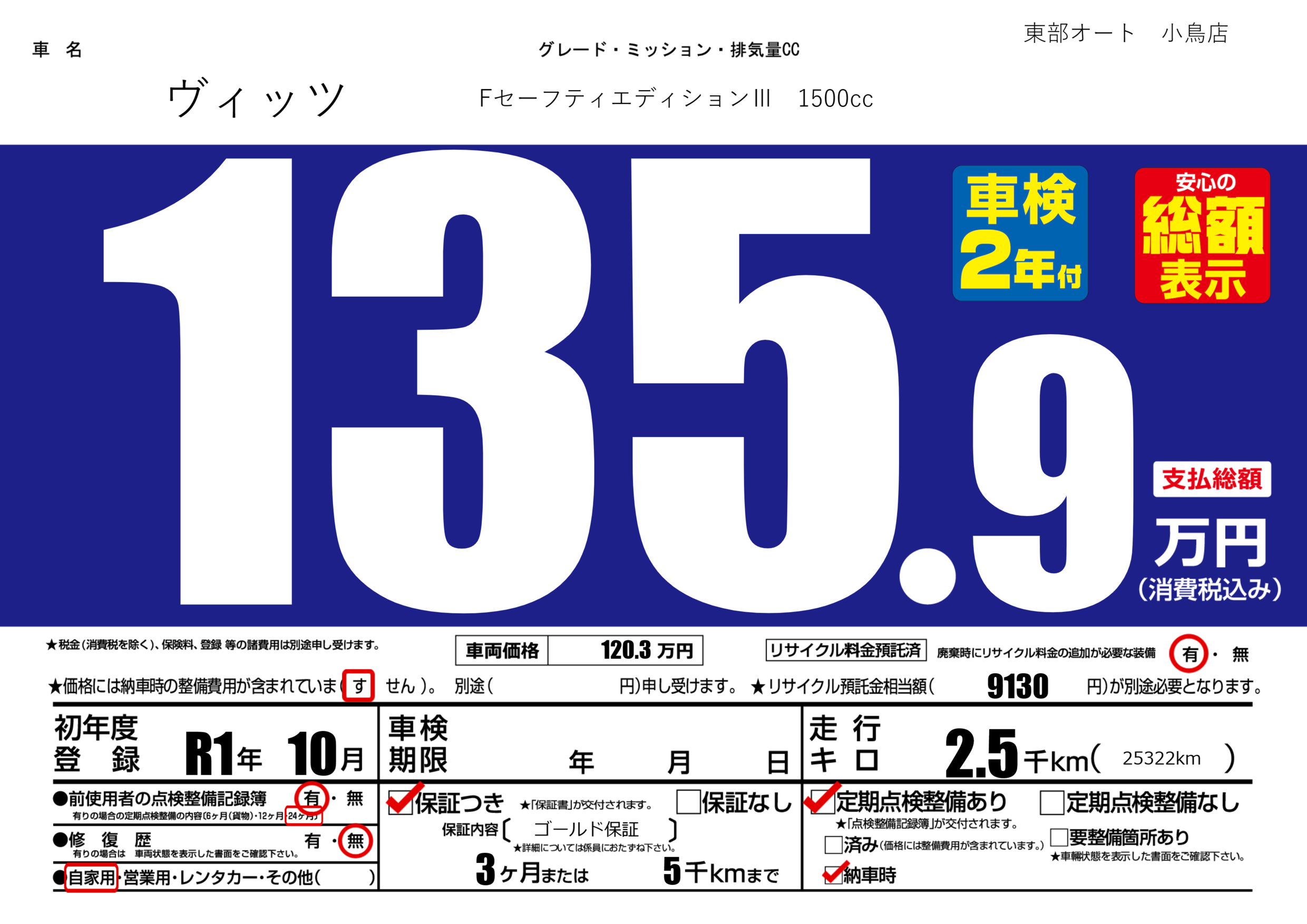保証付き 保証内容( ゴールド保証) 3ヶ月または(5)千kmまで |