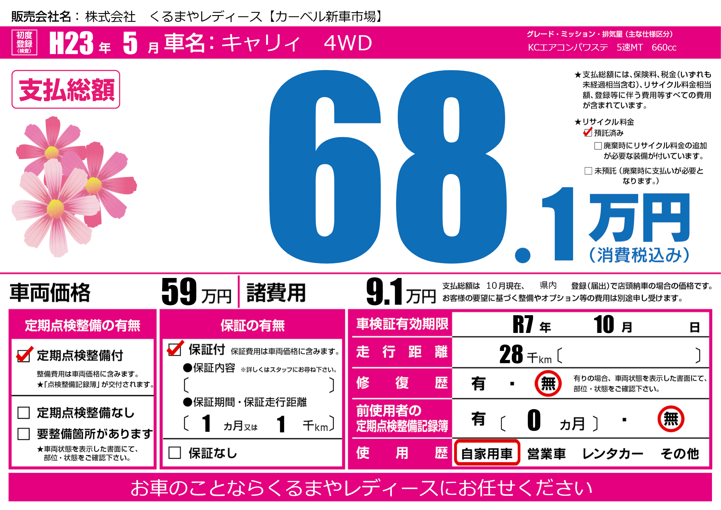 | 車名 | キャリィ 4WD | グレード ミッション 排気量 |